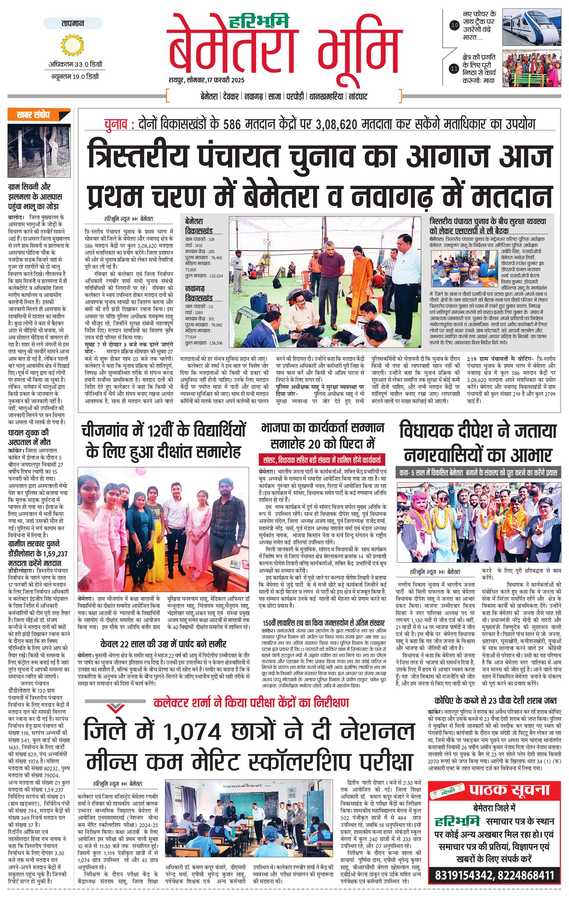 बेमेतरा भूमि - 17 Feb 2025 - - Page 1