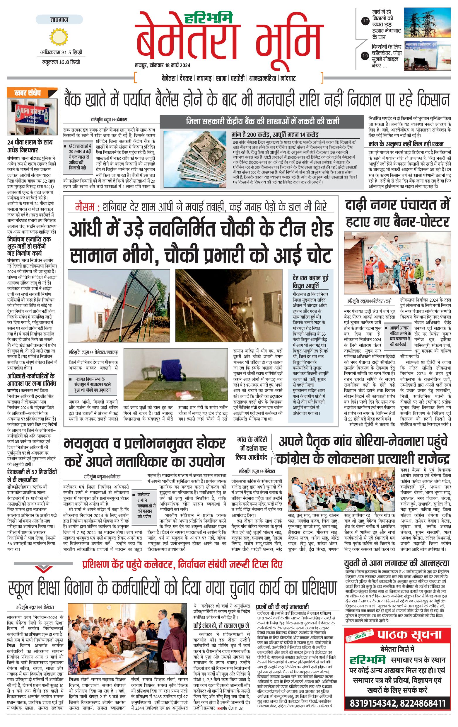 बेमेतरा भूमि - 18 Mar 2024 - - Page 1