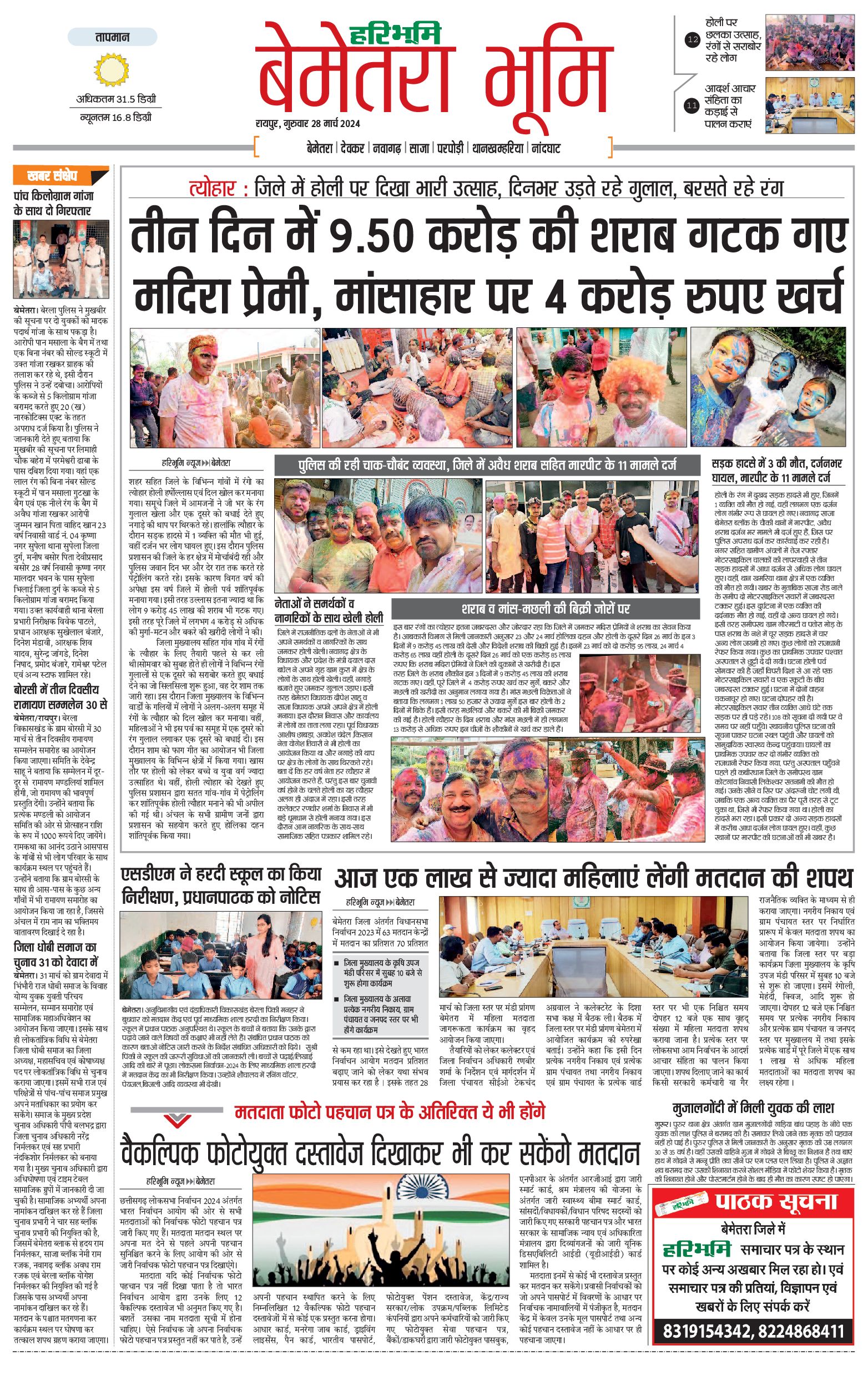 बेमेतरा भूमि - 28 Mar 2024 - - Page 1