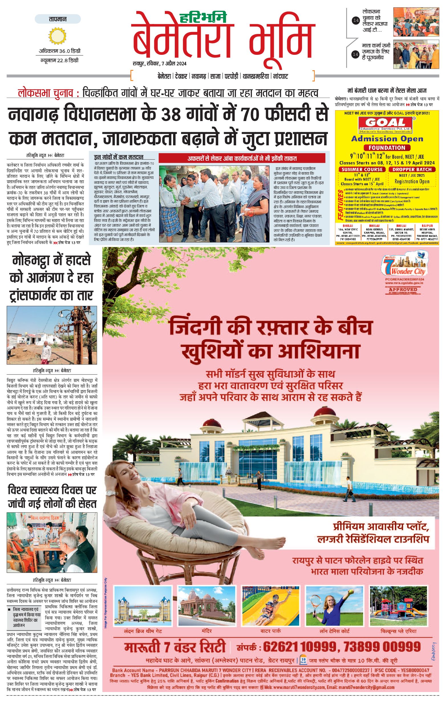 बेमेतरा भूमि - 07 Apr 2024 - - Page 1