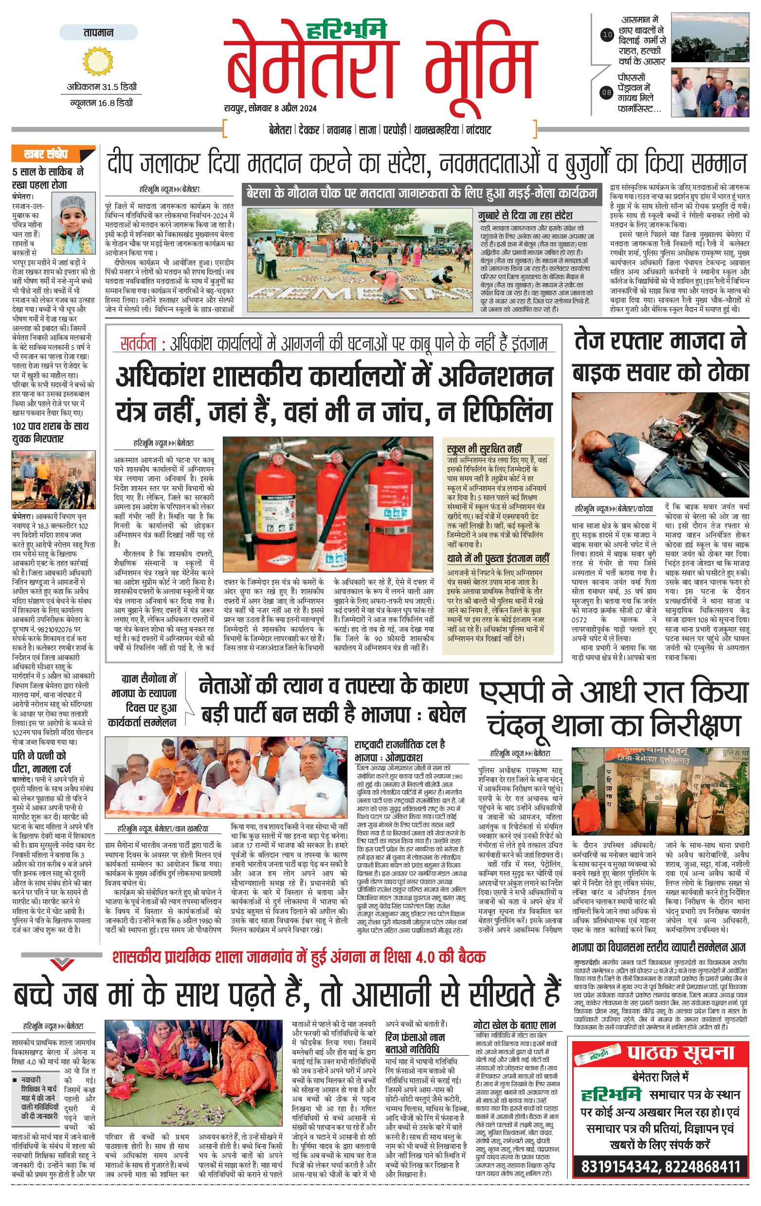 बेमेतरा भूमि - 08 Apr 2024 - - Page 1