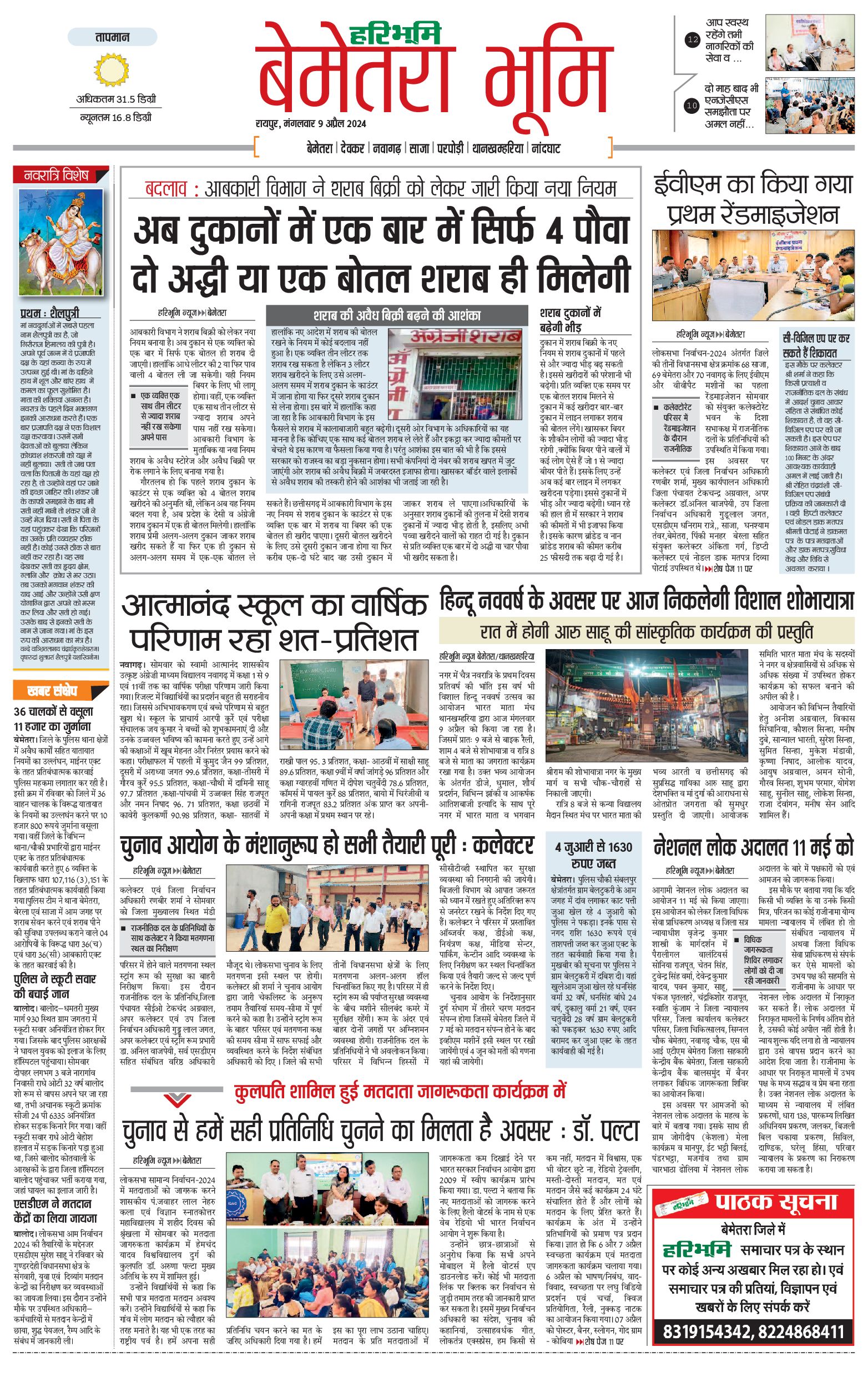 बेमेतरा भूमि - 09 Apr 2024 - - Page 1
