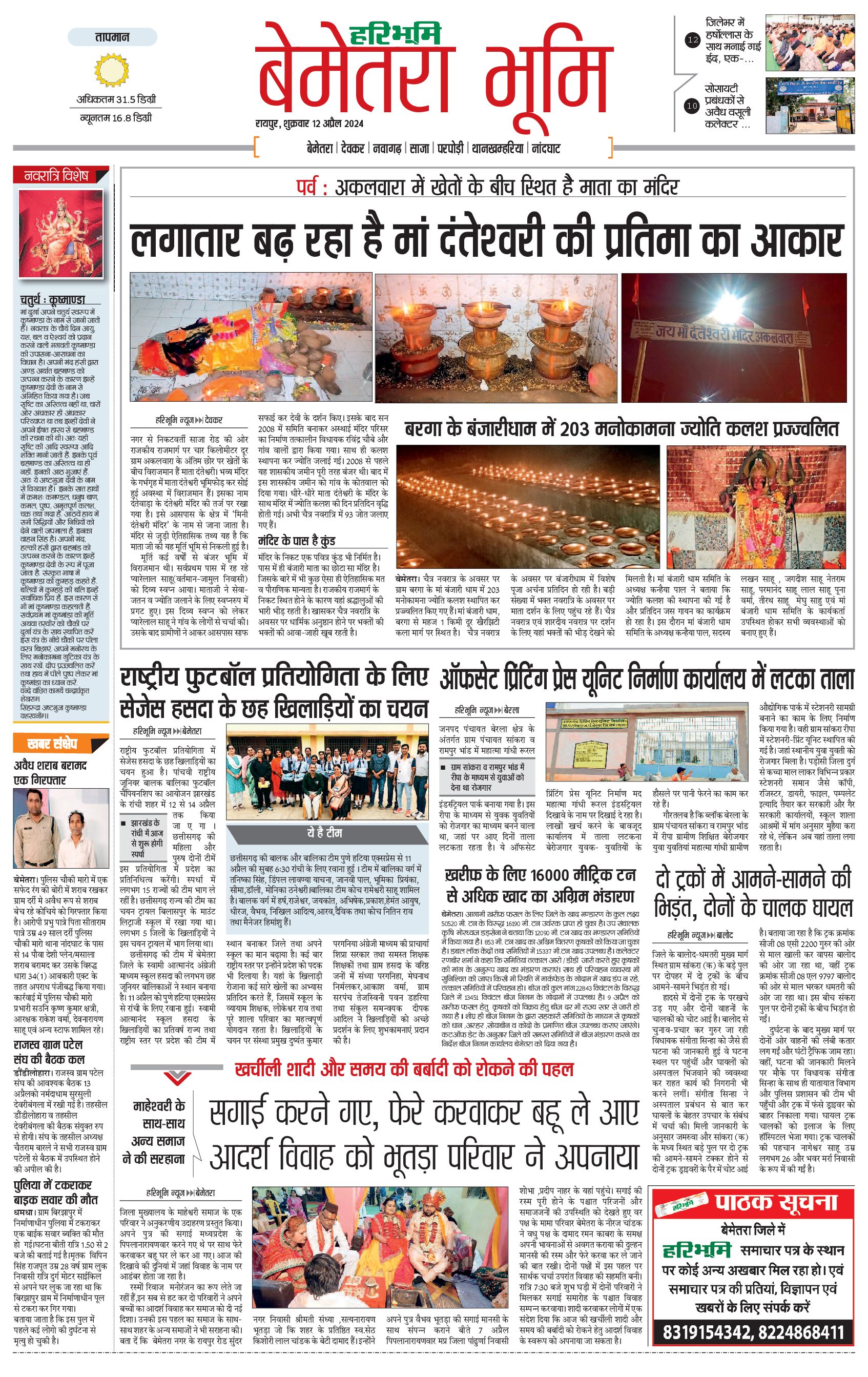 बेमेतरा भूमि - 12 Apr 2024 - - Page 1