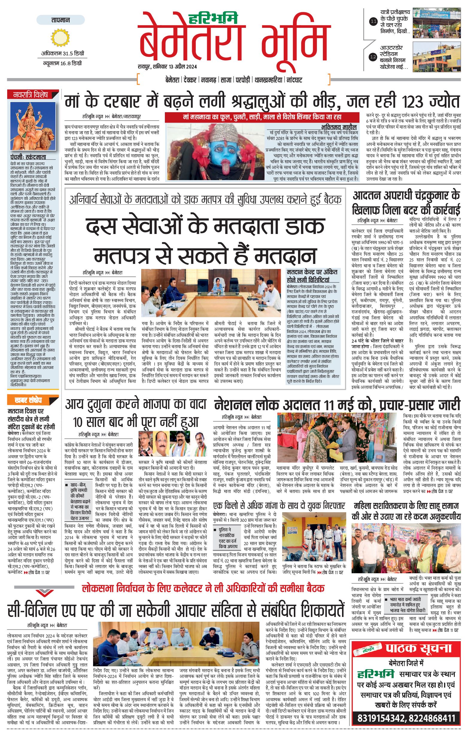 बेमेतरा भूमि - 13 Apr 2024 - - Page 1