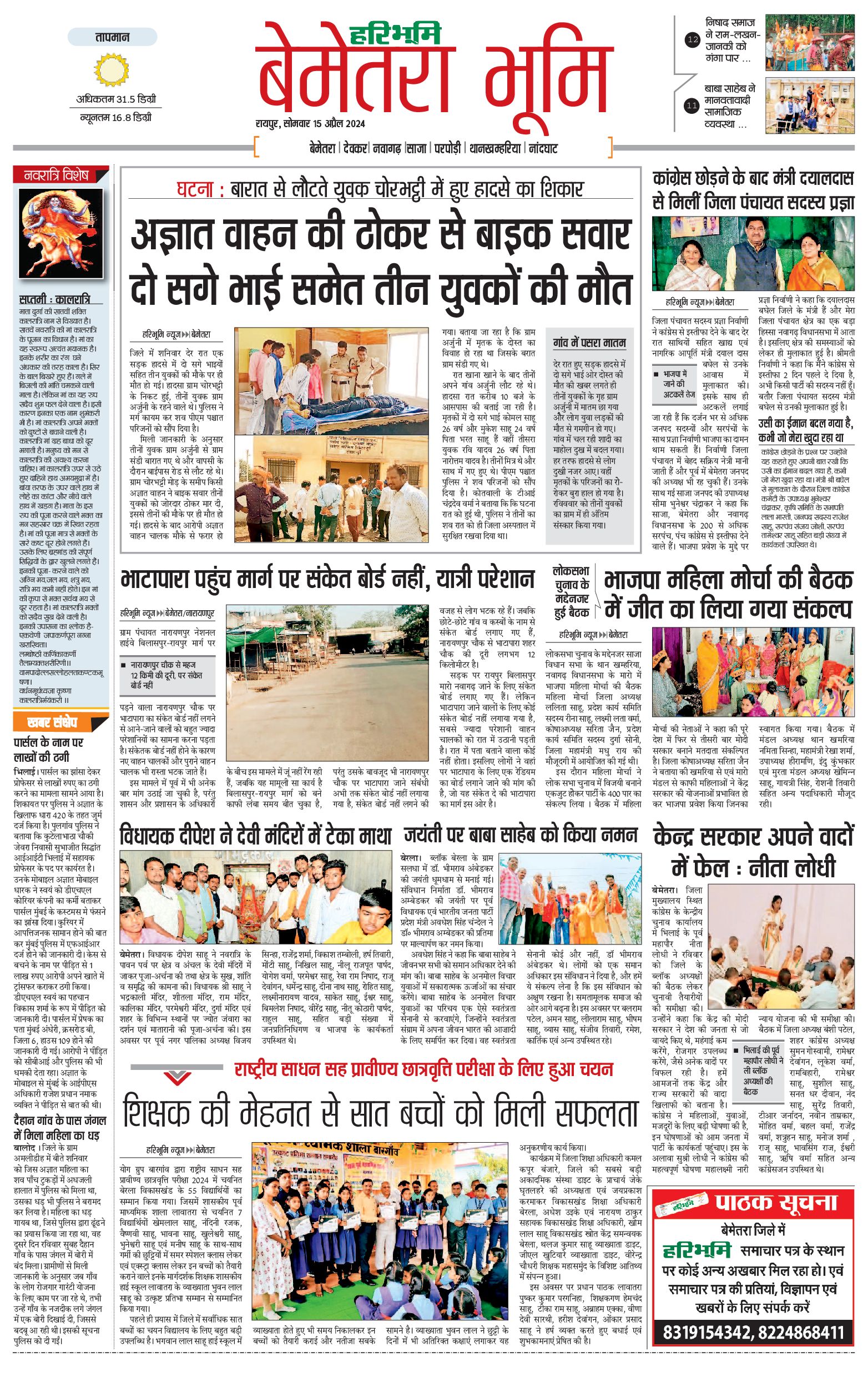 बेमेतरा भूमि - 15 Apr 2024 - - Page 1