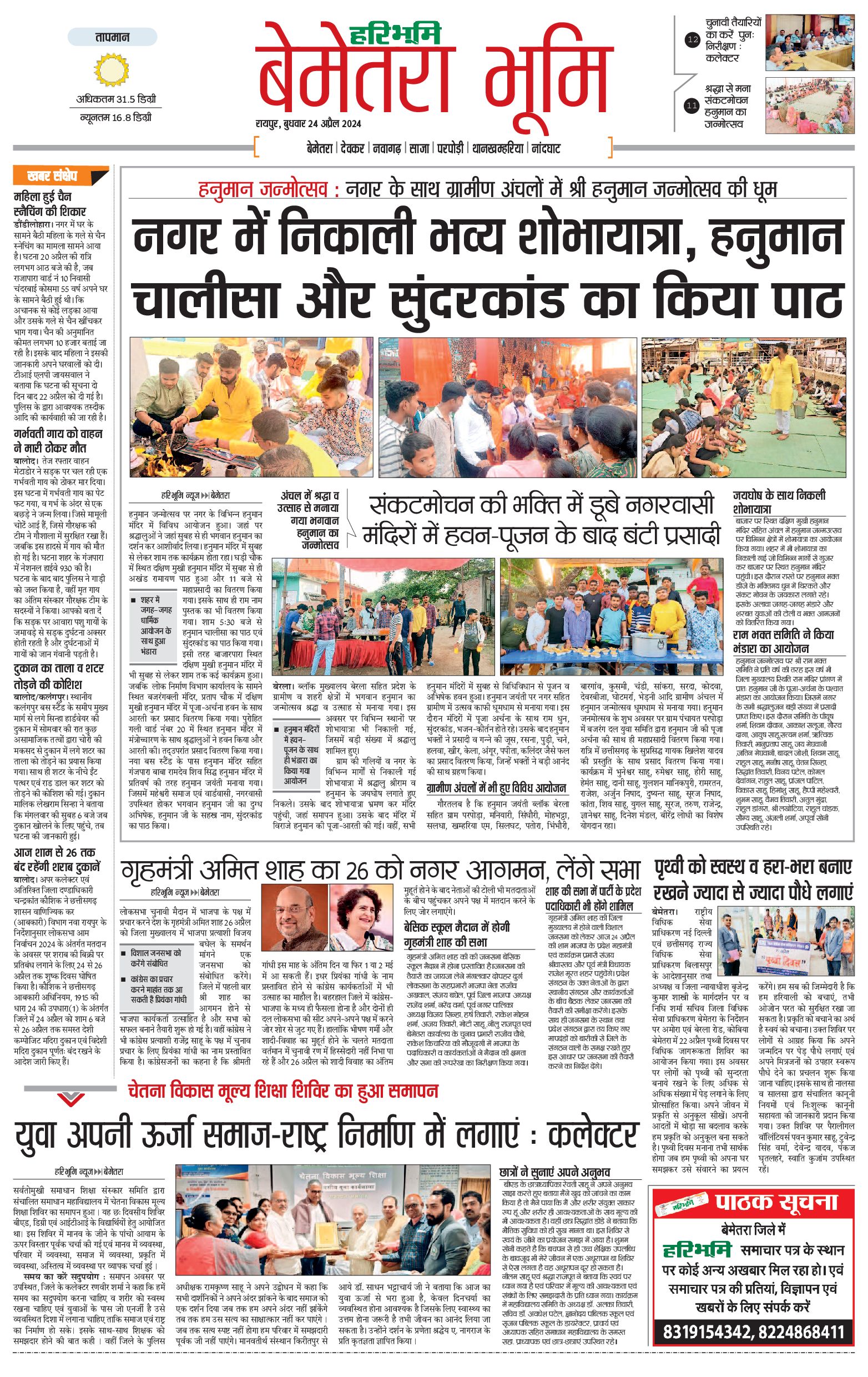 बेमेतरा भूमि - 24 Apr 2024 - - Page 1