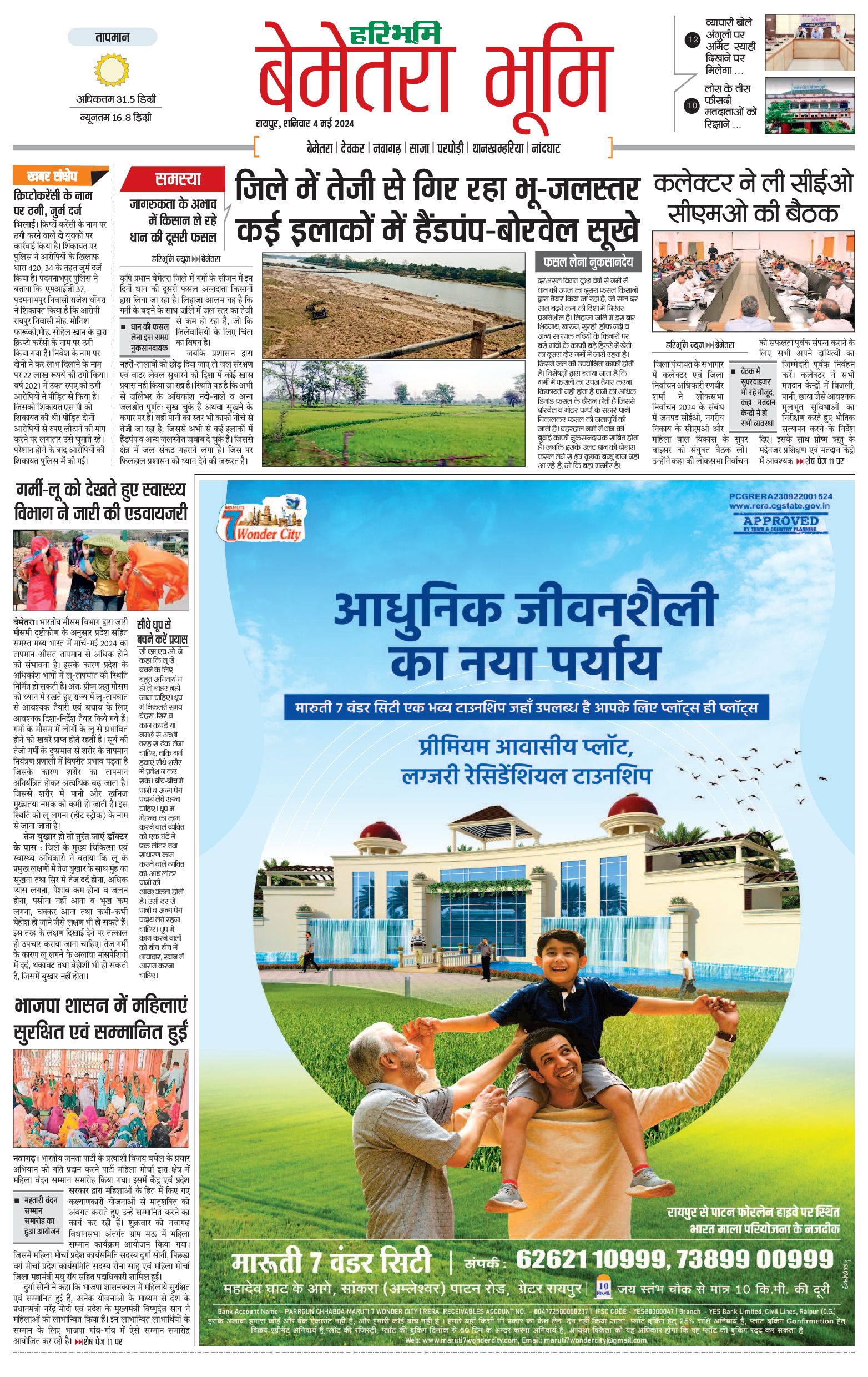 बेमेतरा भूमि - 04 May 2024 - - Page 1
