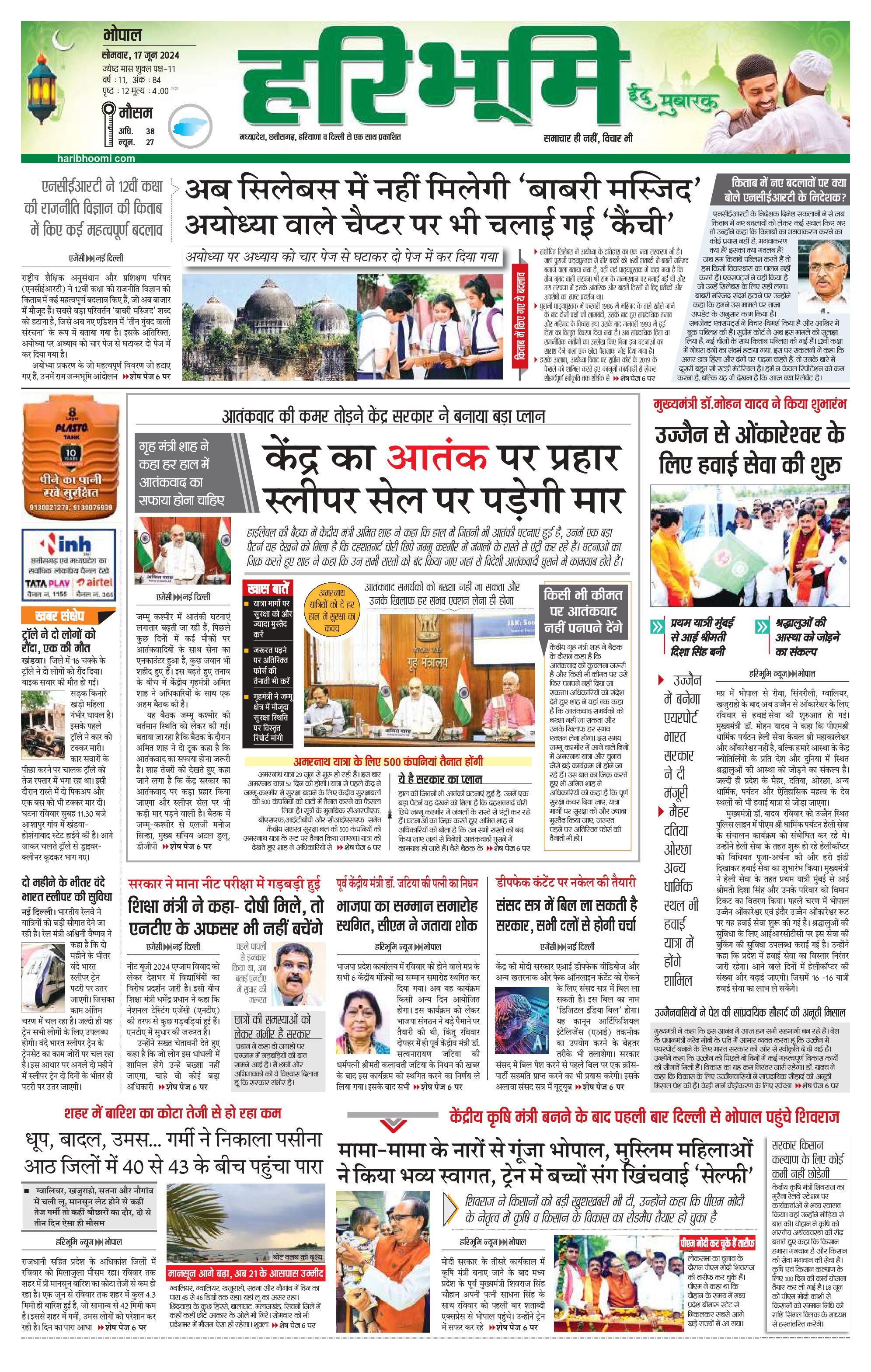 भोपाल मुख्य संस्करण - 17 Jun 2024 - - Page 1
