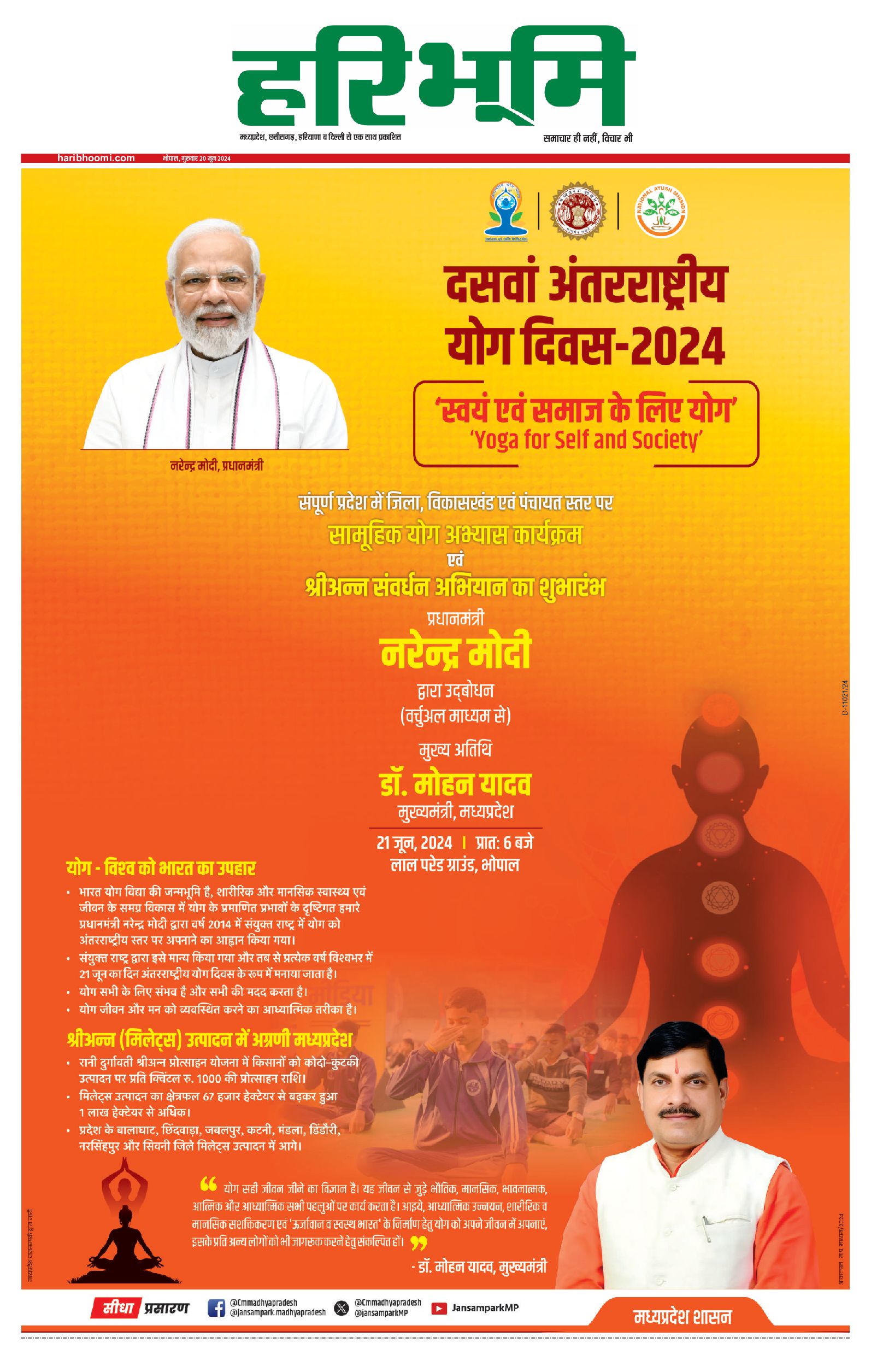 भोपाल मुख्य संस्करण - 20 Jun 2024 - - Page 1