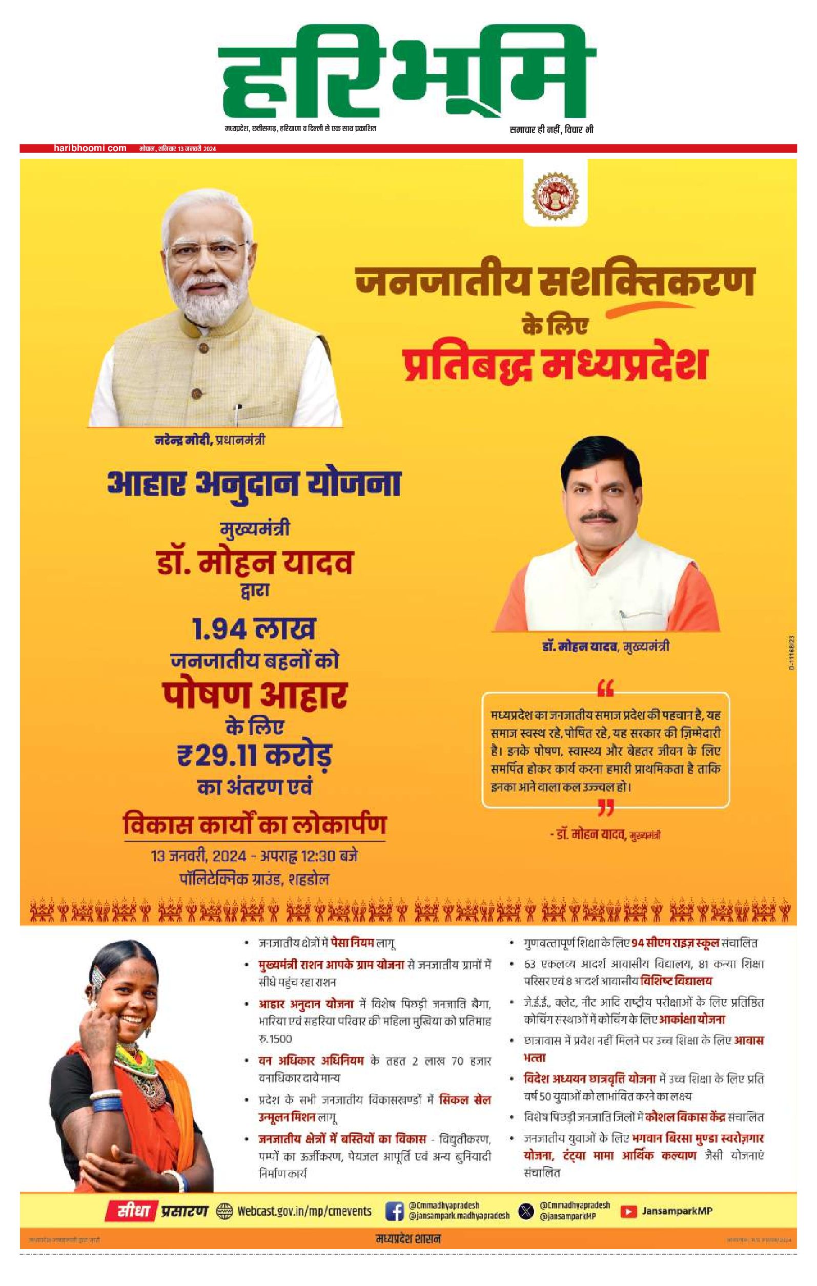 भोपाल मुख्य संस्करण - 13 Jan 2024 - - Page 1