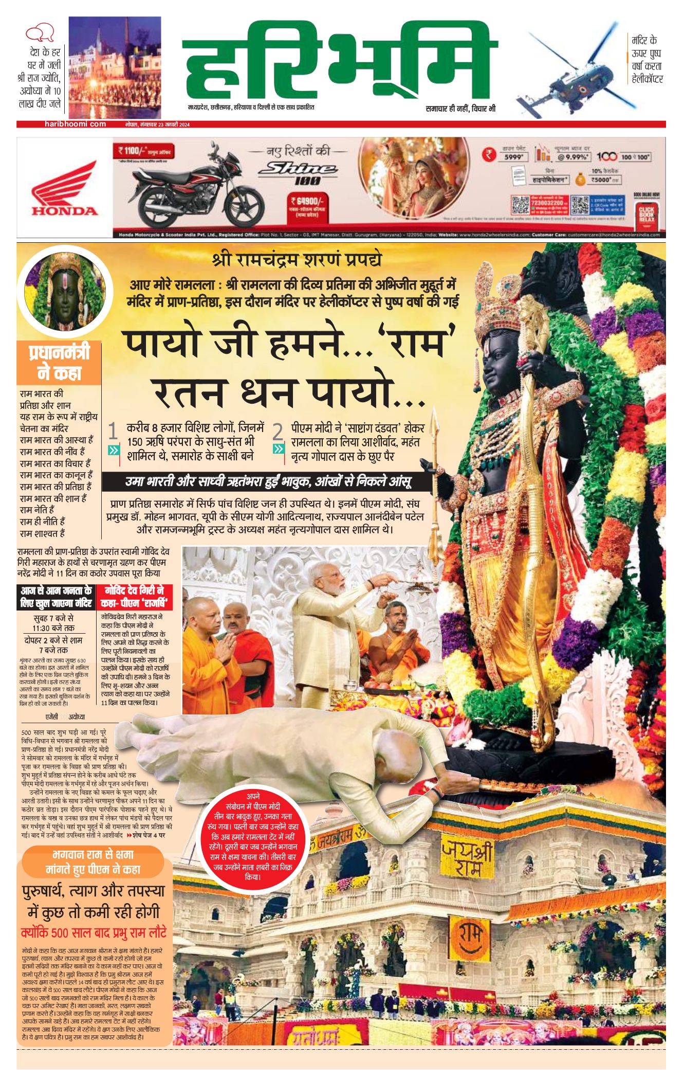 भोपाल मुख्य संस्करण - 23 Jan 2024 - - Page 1