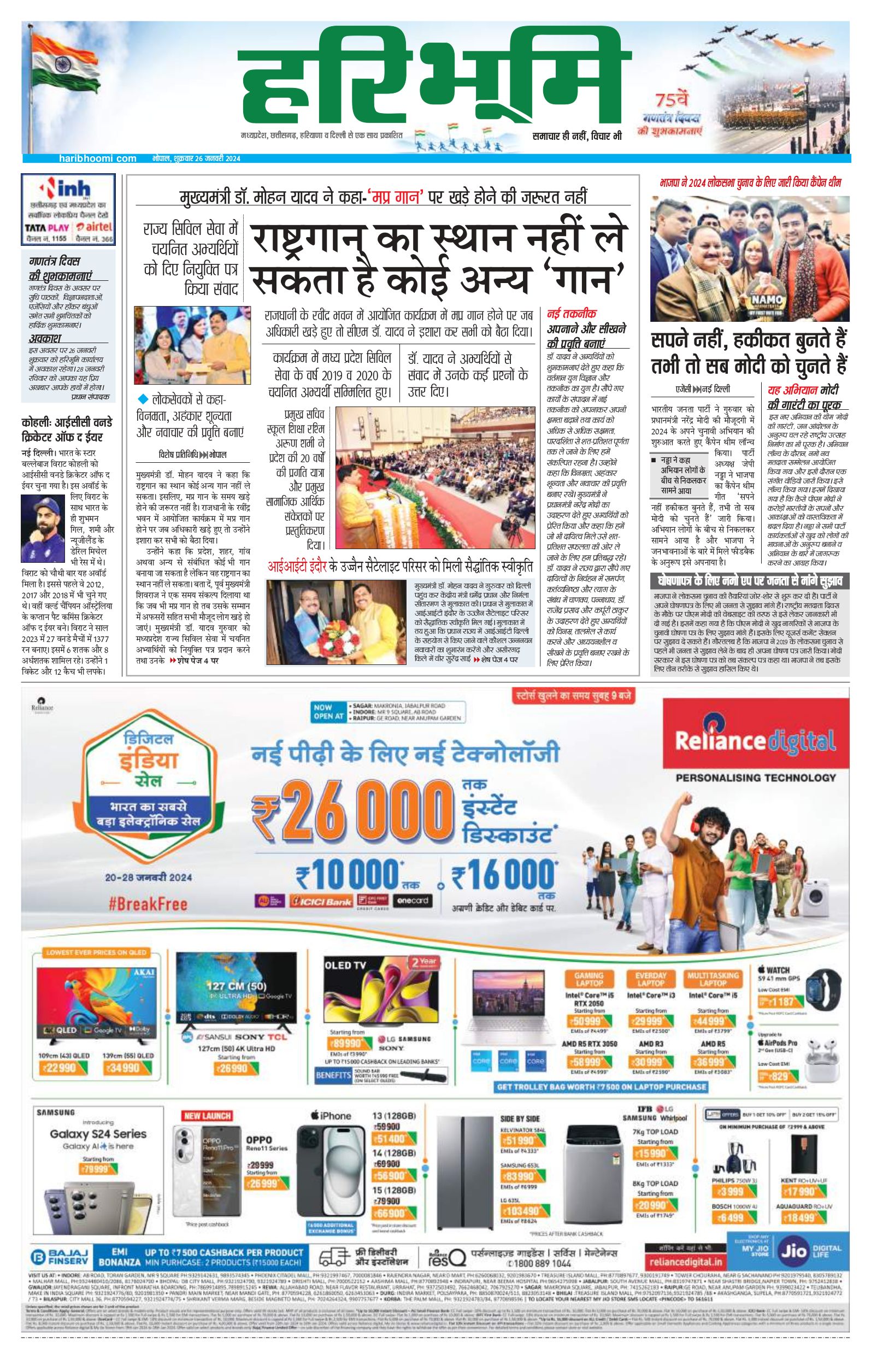 भोपाल मुख्य संस्करण - 26 Jan 2024 - - Page 1