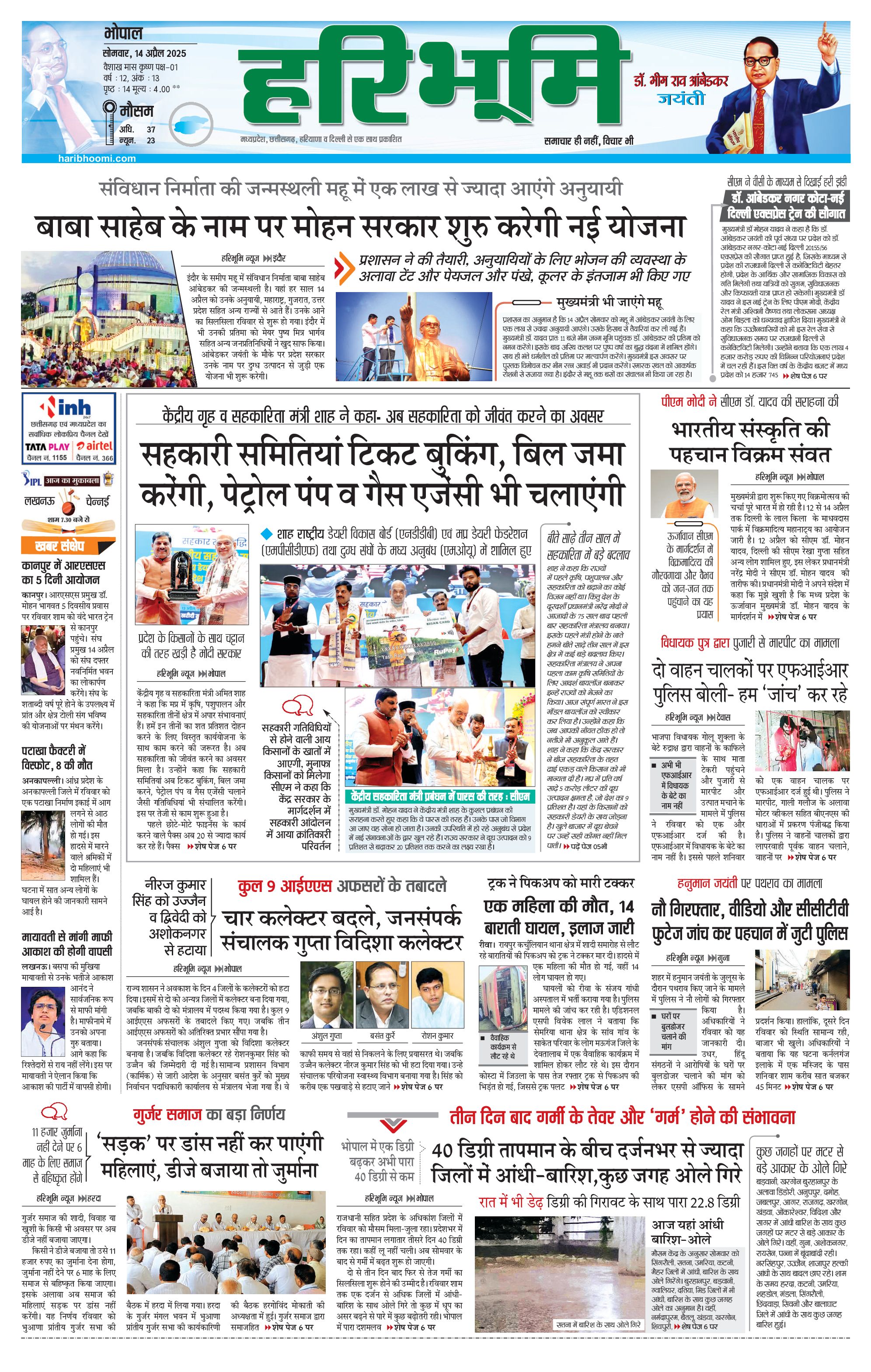 भोपाल मुख्य संस्करण - 14 Apr 2025 - - Page 1