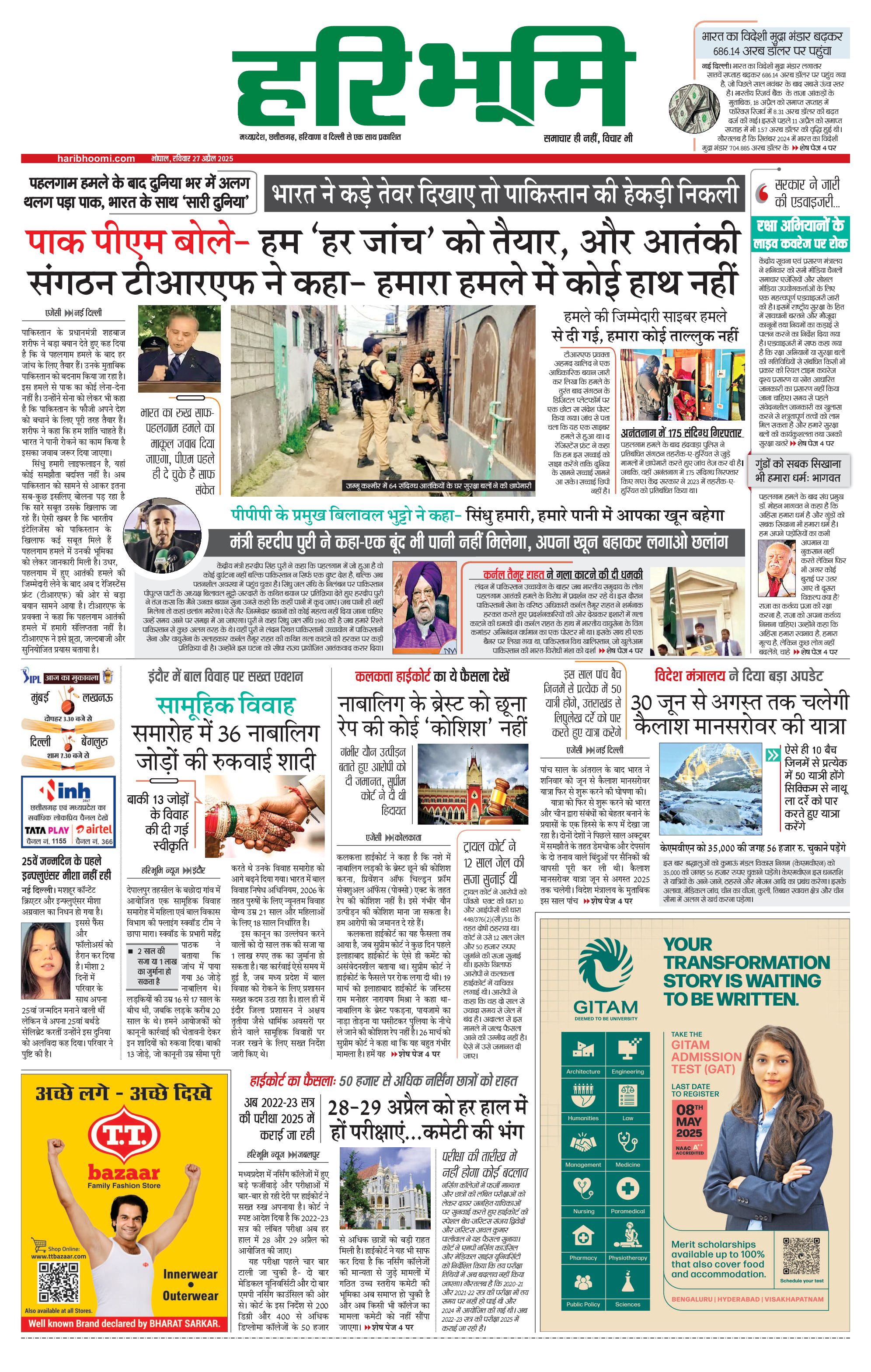 भोपाल मुख्य संस्करण - 27 Apr 2025 - - Page 1