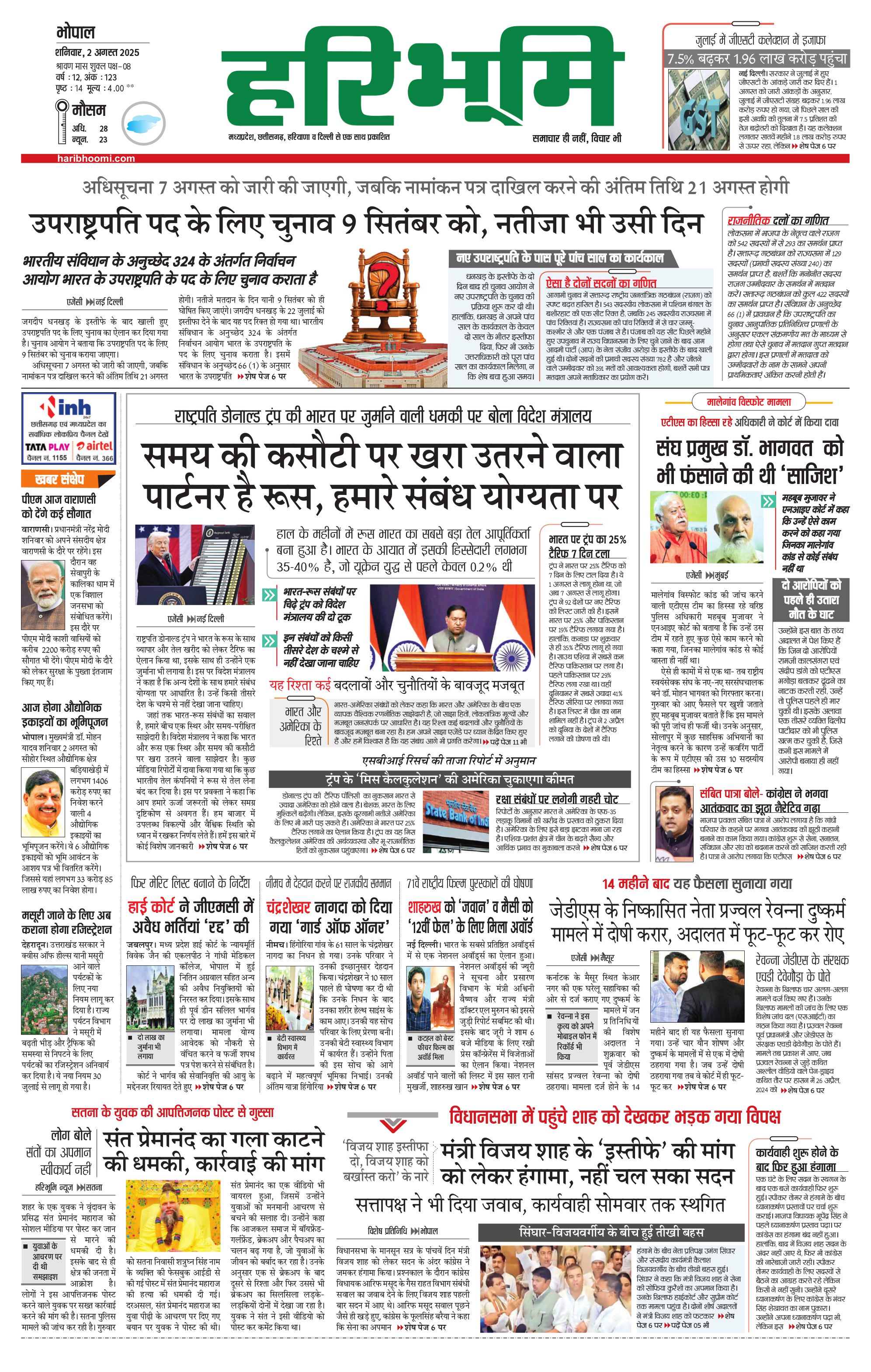भोपाल मुख्य संस्करण - 02 Aug 2025 - - Page 1
