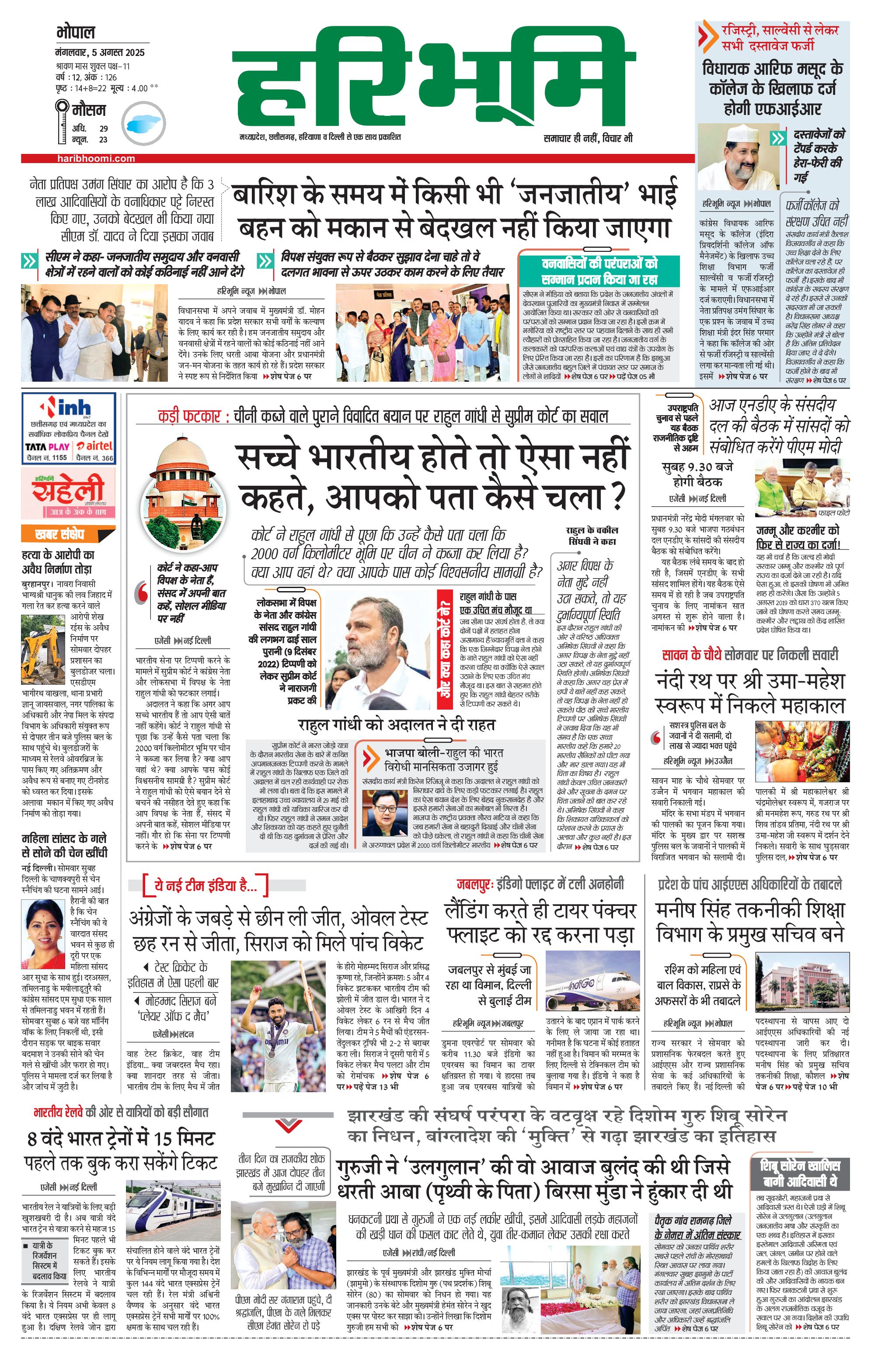 भोपाल मुख्य संस्करण - 05 Aug 2025 - - Page 1
