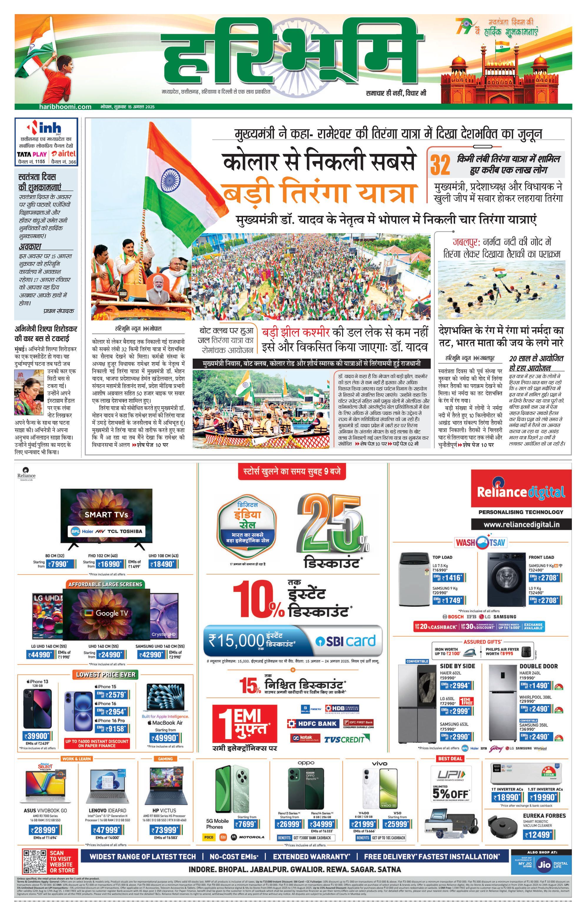 भोपाल मुख्य संस्करण - 15 Aug 2025 - - Page 1