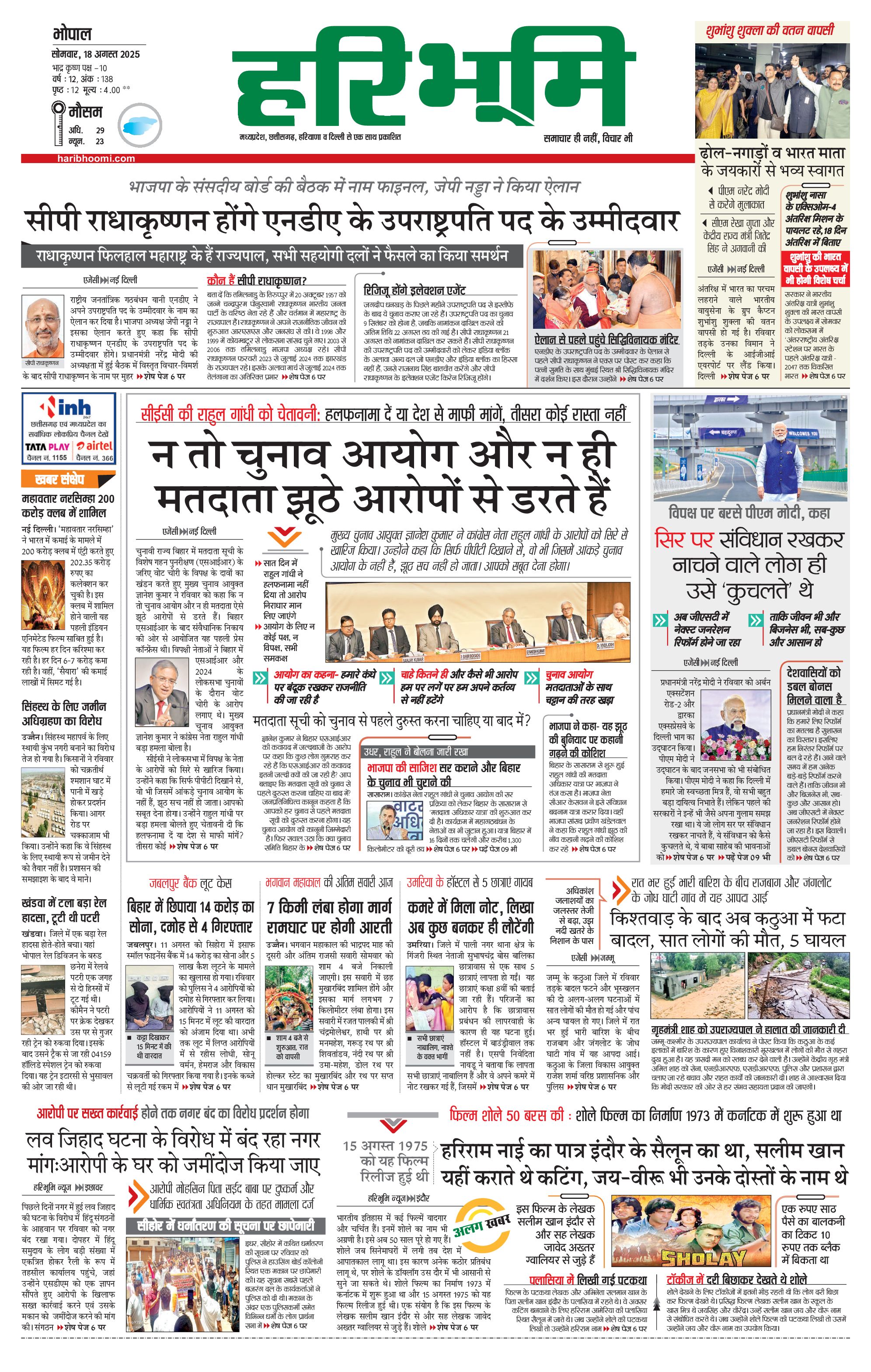 भोपाल मुख्य संस्करण - 18 Aug 2025 - - Page 1