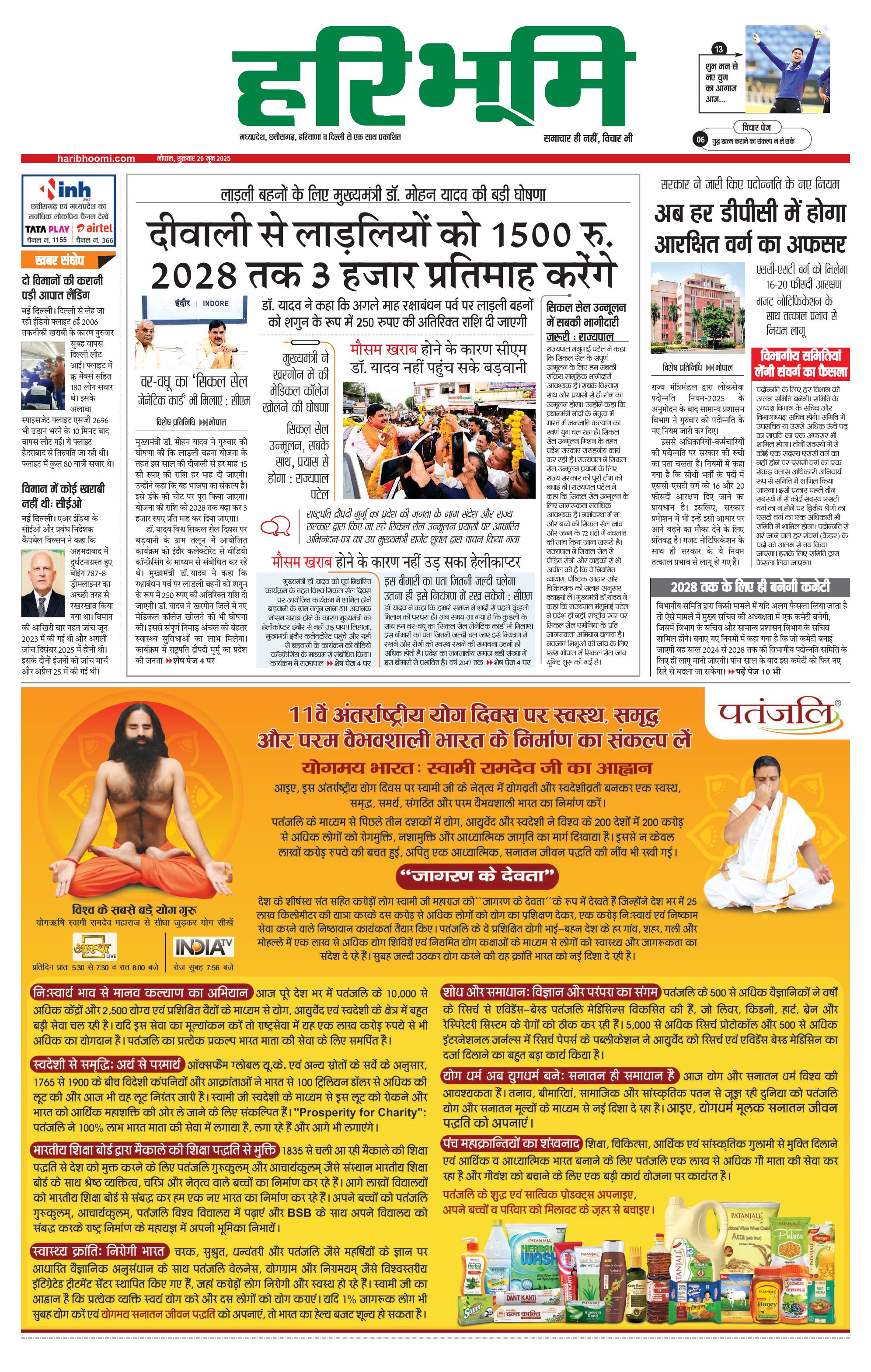भोपाल मुख्य संस्करण - 20 Jun 2025 - - Page 1
