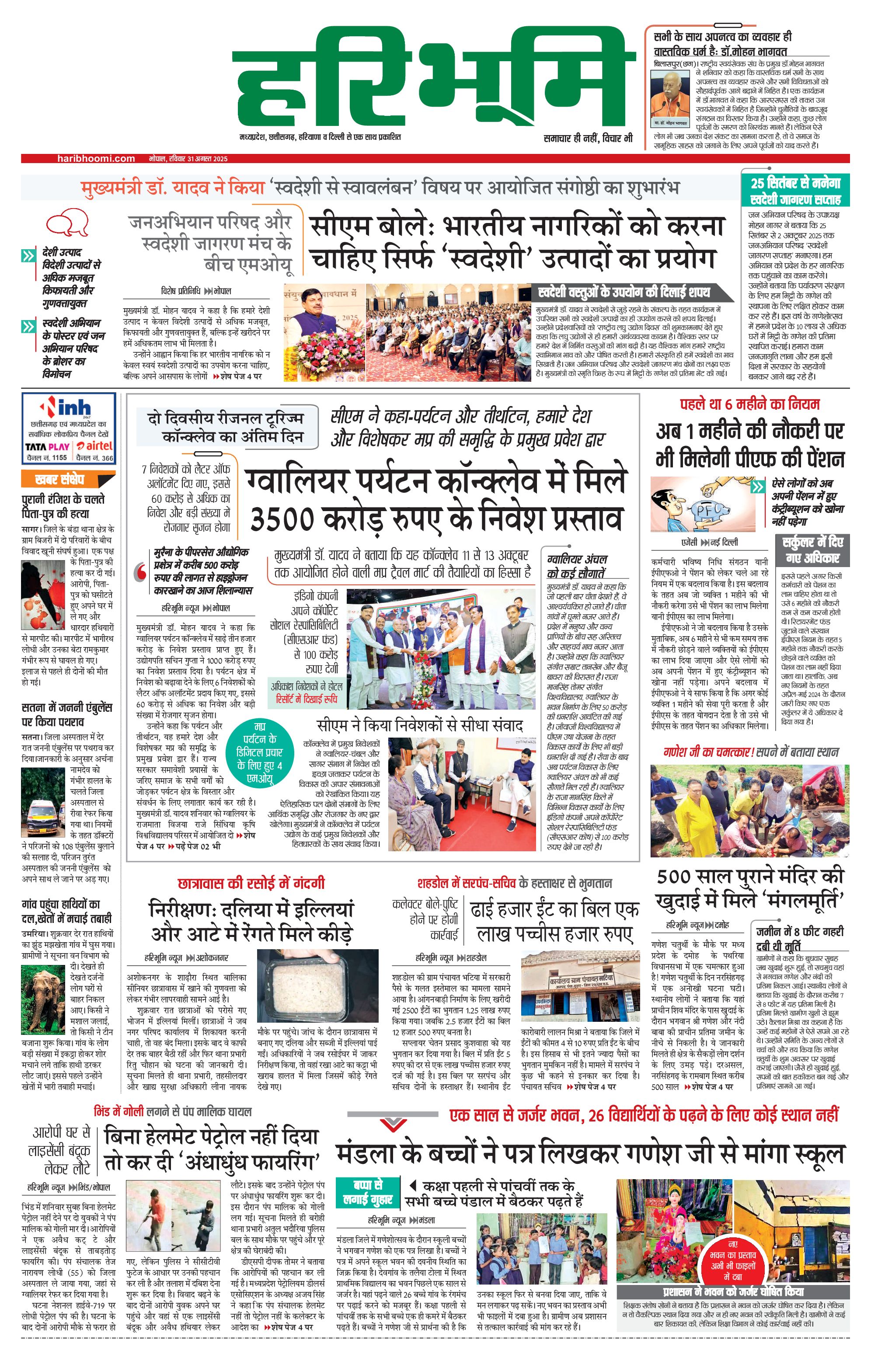 भोपाल मुख्य संस्करण - 31 Aug 2025 - - Page 1