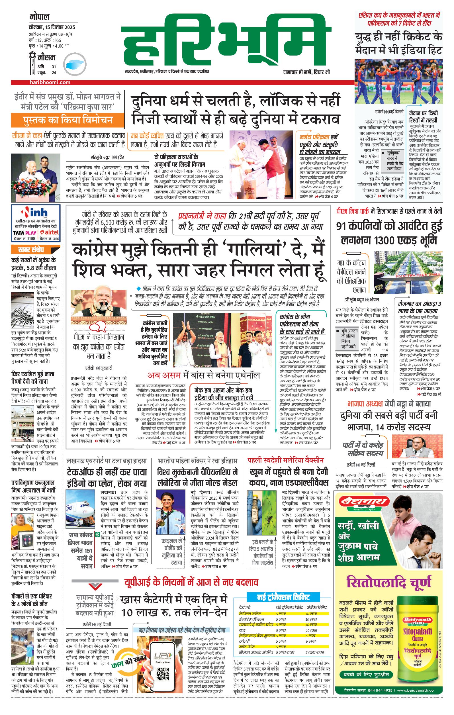 भोपाल मुख्य संस्करण - 15 Sep 2025 - - Page 1