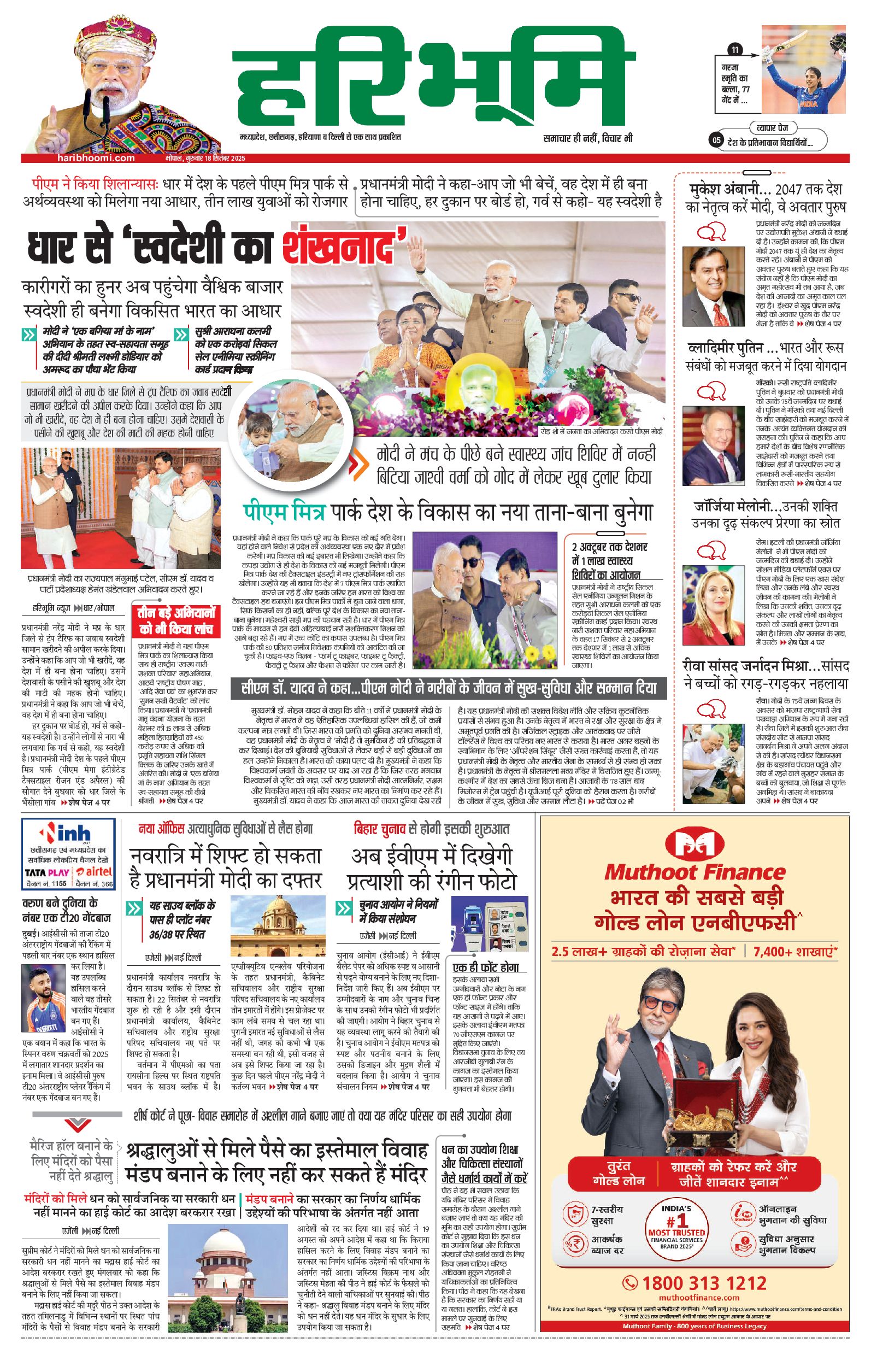 भोपाल मुख्य संस्करण - 18 Sep 2025 - - Page 1