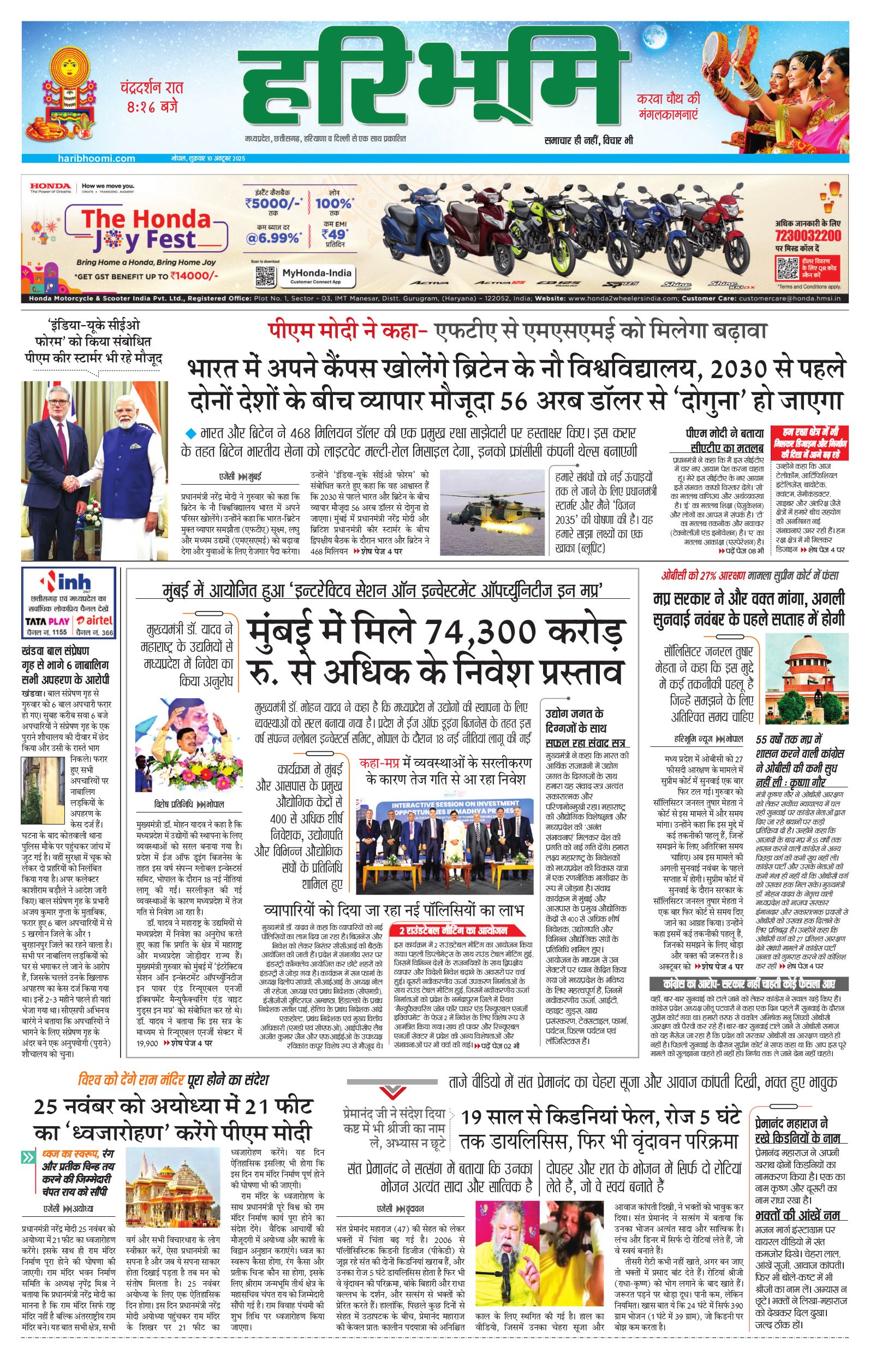 भोपाल मुख्य संस्करण - 10 Oct 2025 - - Page 1