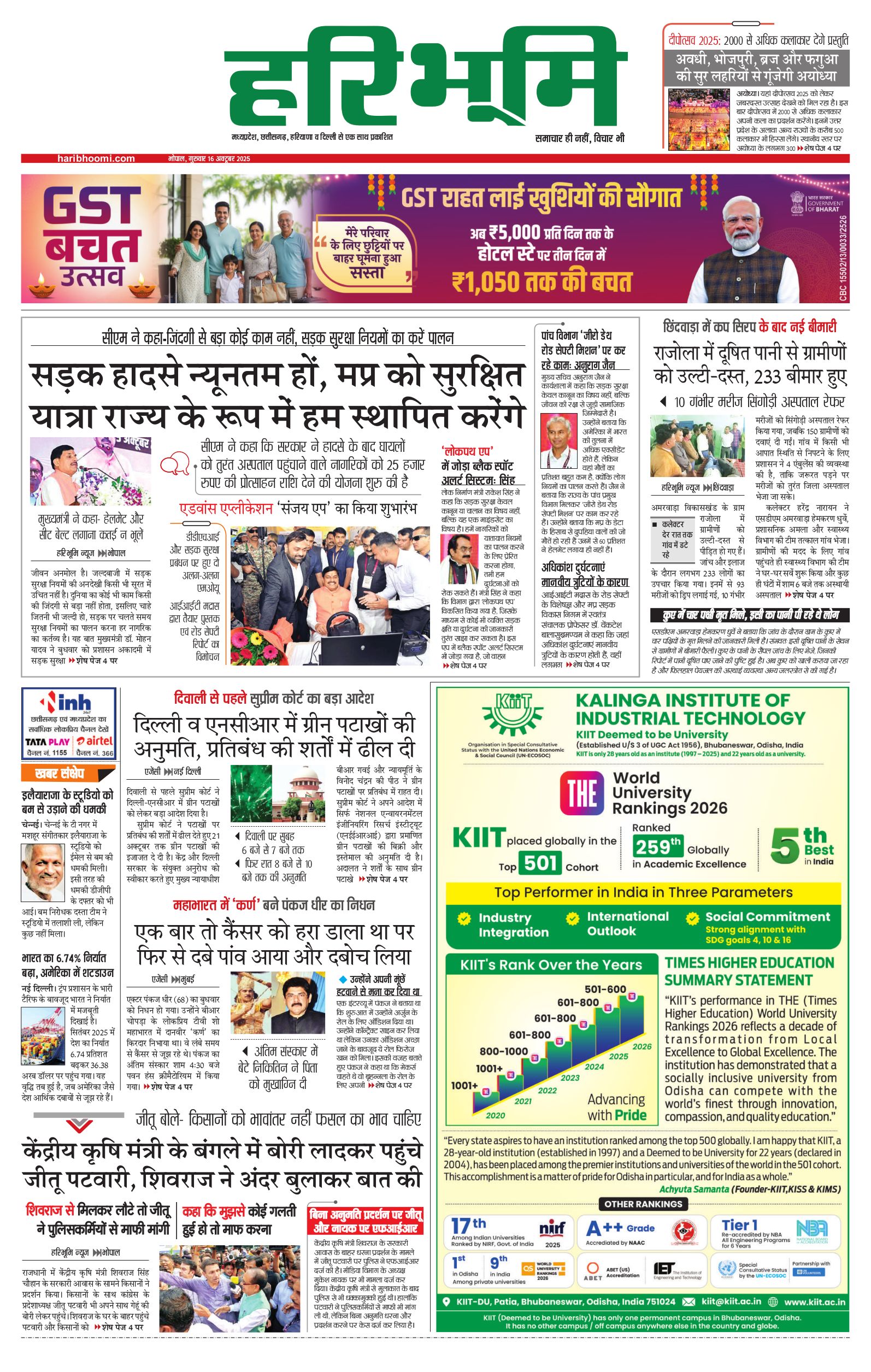 भोपाल मुख्य संस्करण - 16 Oct 2025 - - Page 1