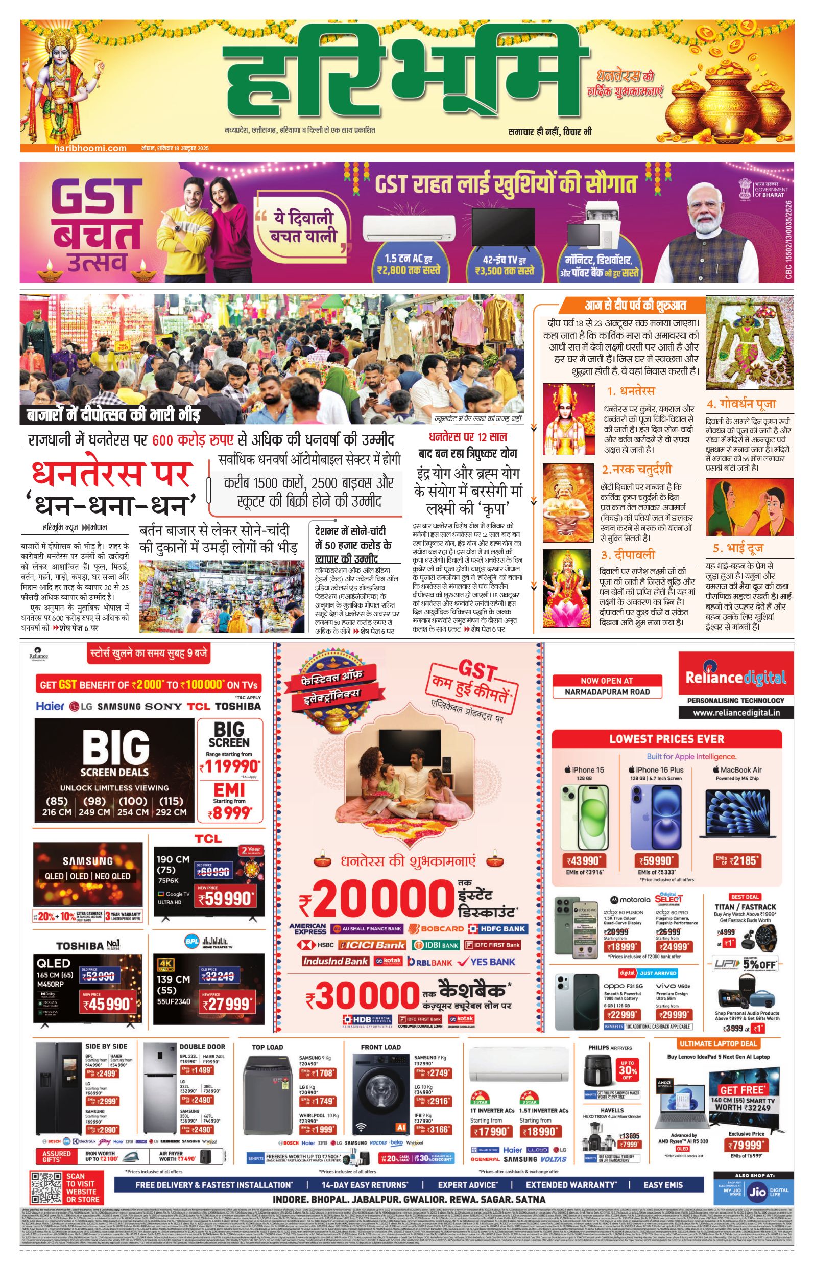भोपाल मुख्य संस्करण - 18 Oct 2025 - - Page 1