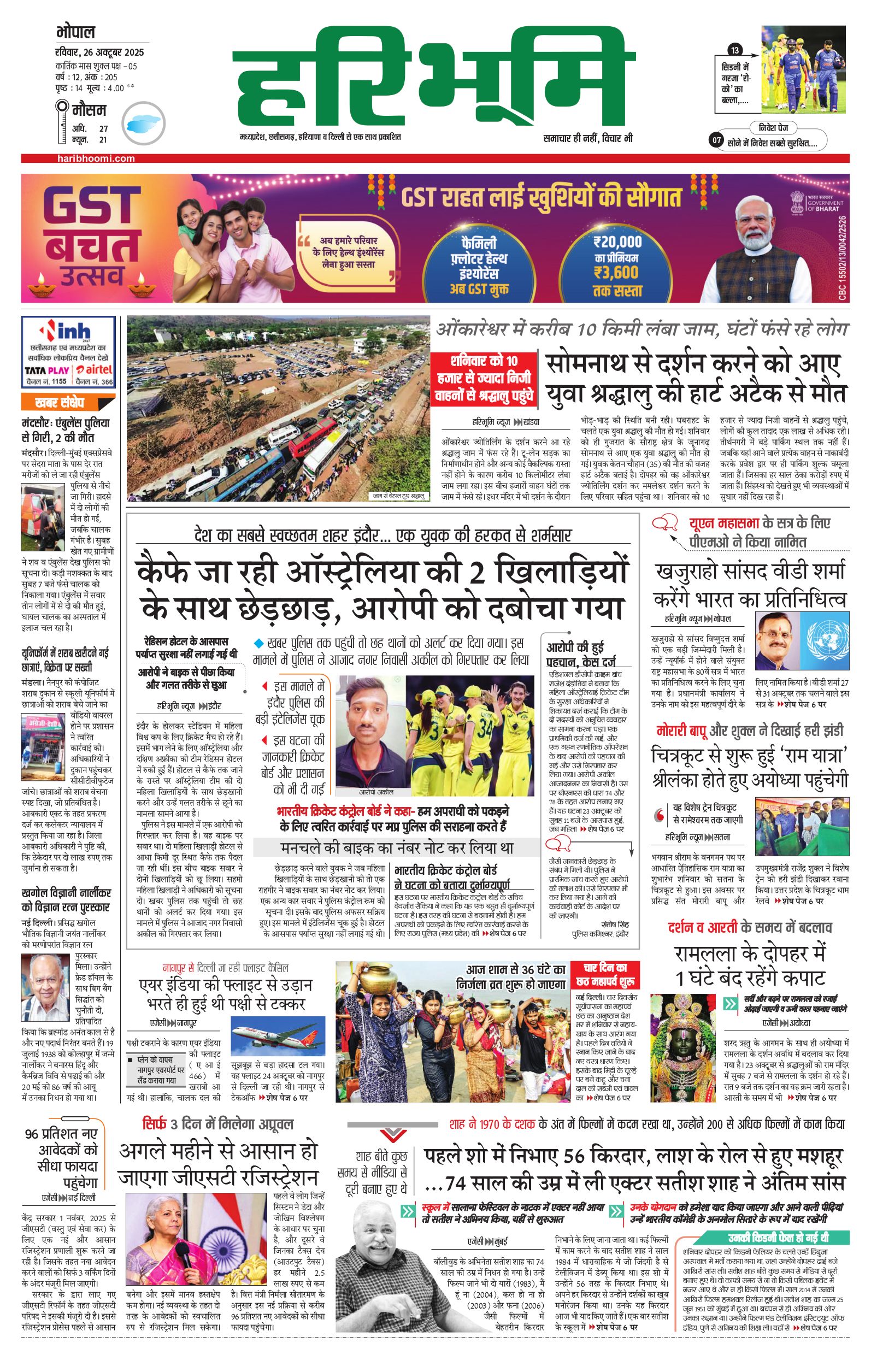 भोपाल मुख्य संस्करण - 26 Oct 2025 - - Page 1