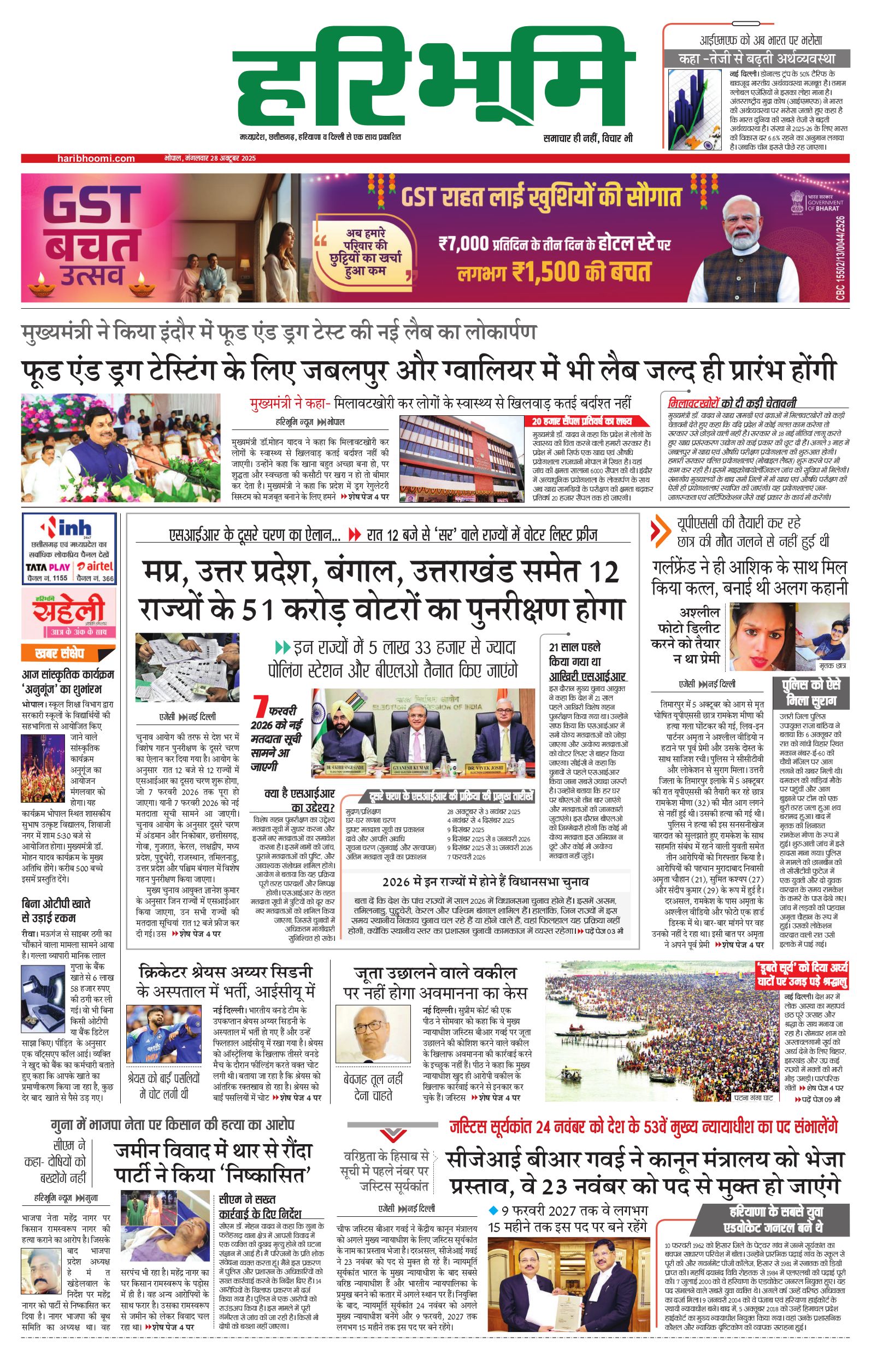 भोपाल मुख्य संस्करण - 28 Oct 2025 - - Page 1