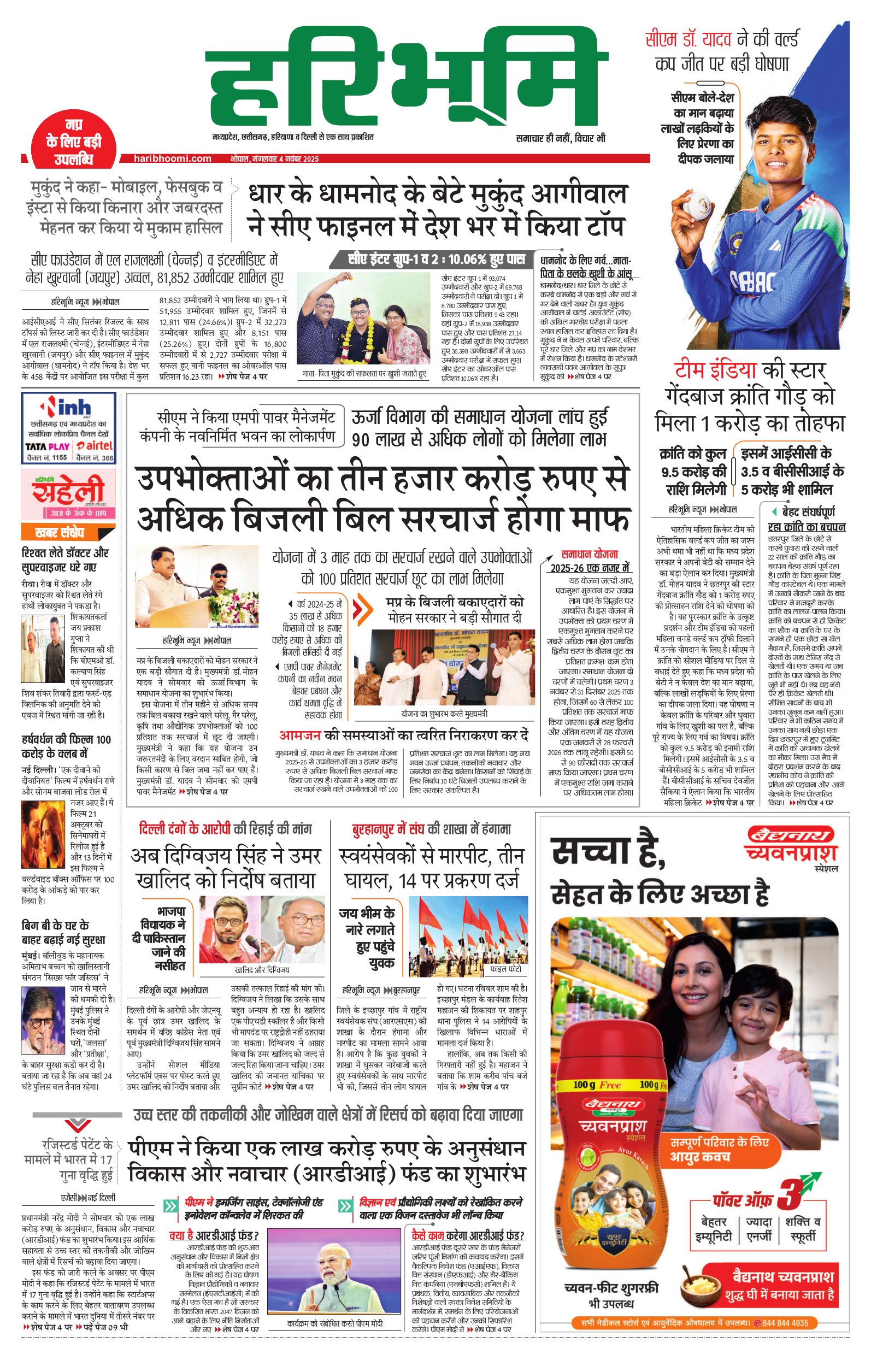 भोपाल मुख्य संस्करण - 04 Nov 2025 - - Page 1