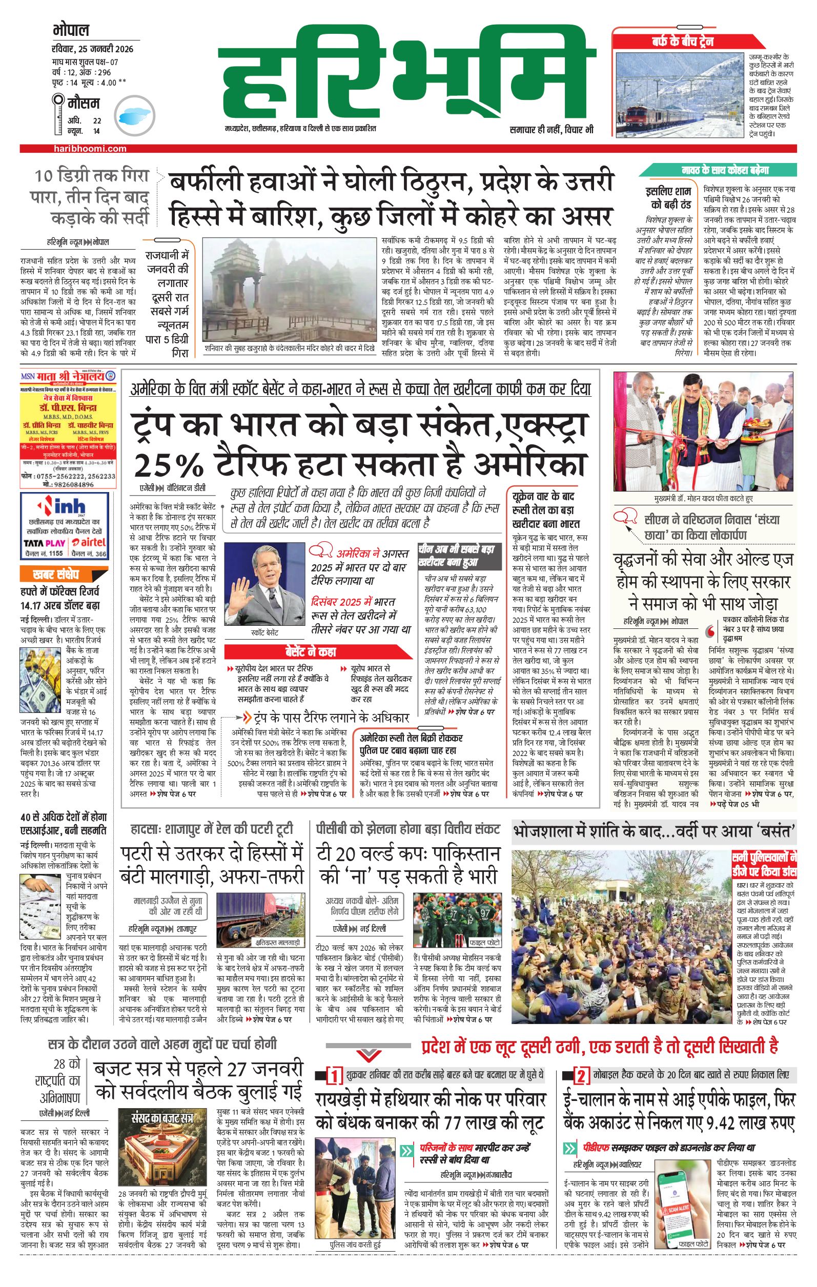 भोपाल मुख्य संस्करण - 25 Jan 2026 - - Page 1