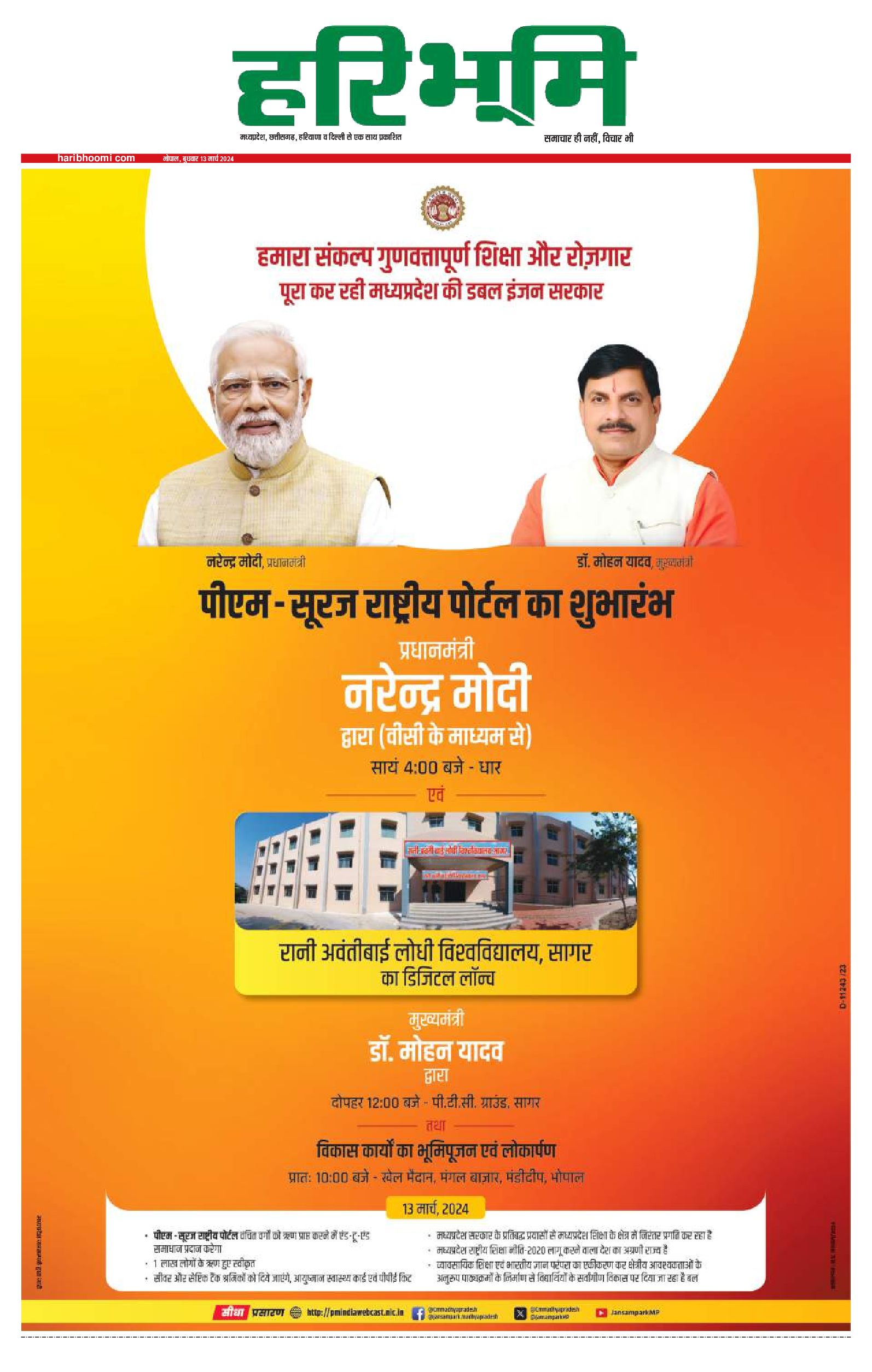 भोपाल मुख्य संस्करण - 13 Mar 2024 - - Page 1