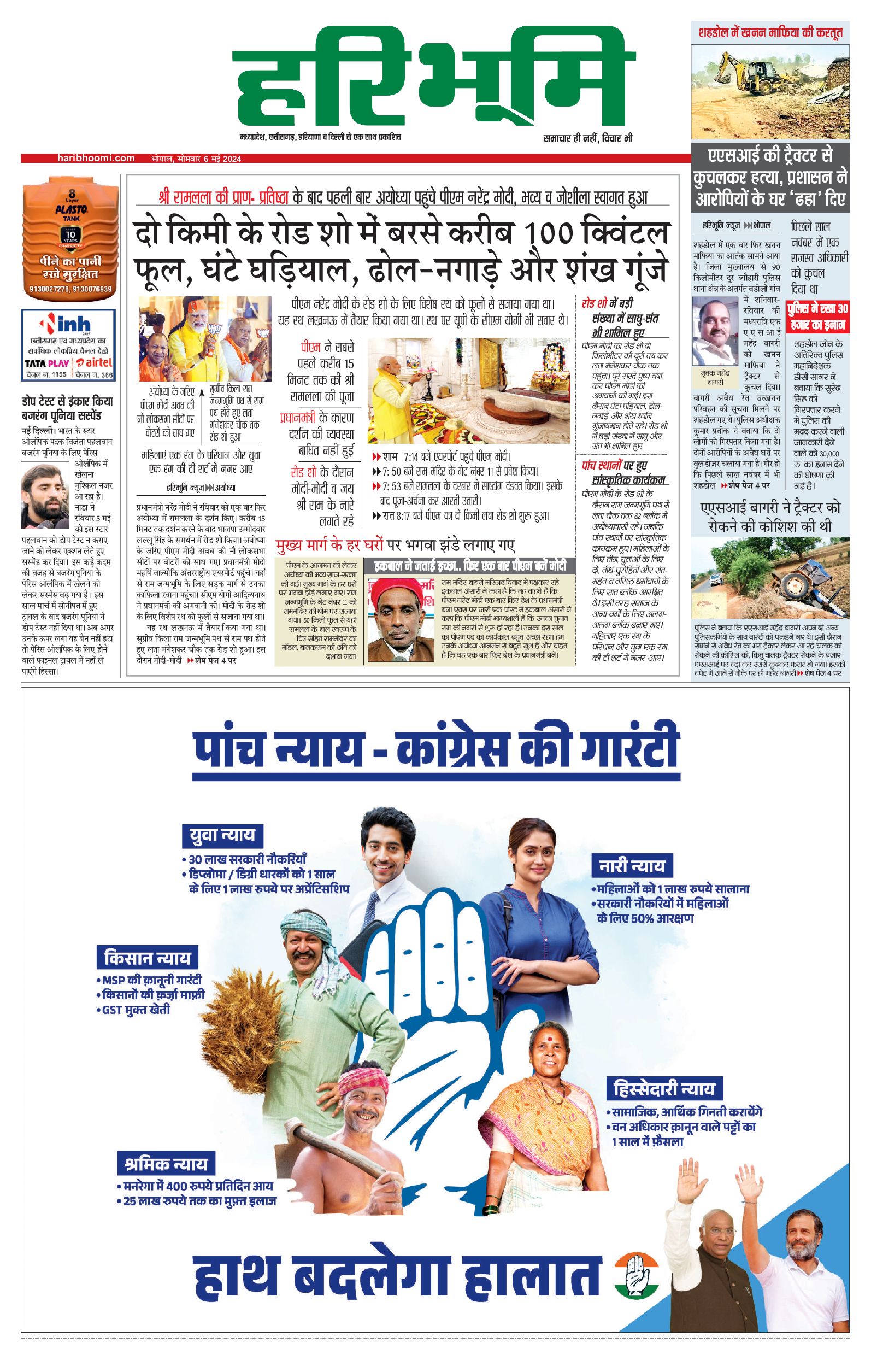 भोपाल मुख्य संस्करण - 06 May 2024 - - Page 1