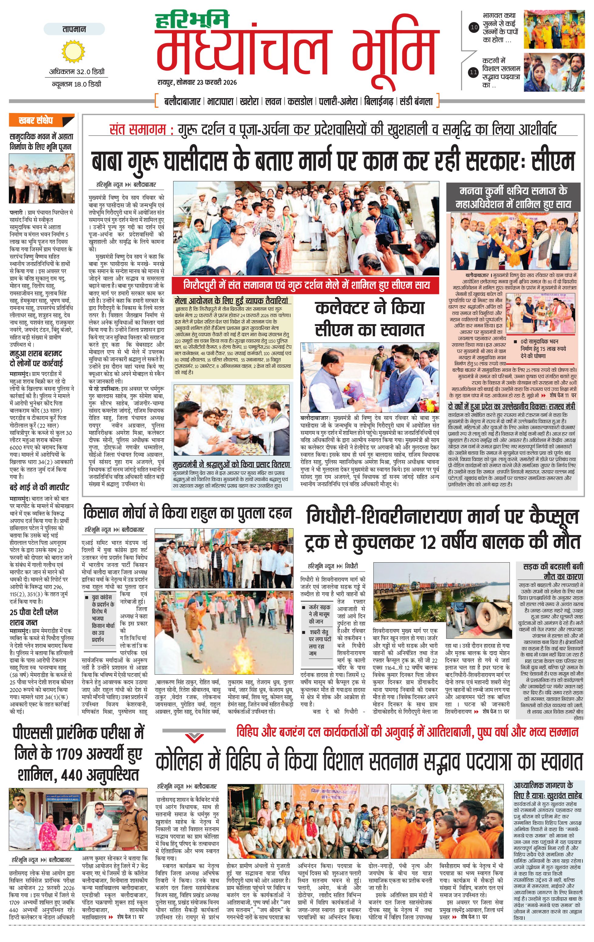 मध्यांचल भूमि - 23 Feb 2026 - - Page 1