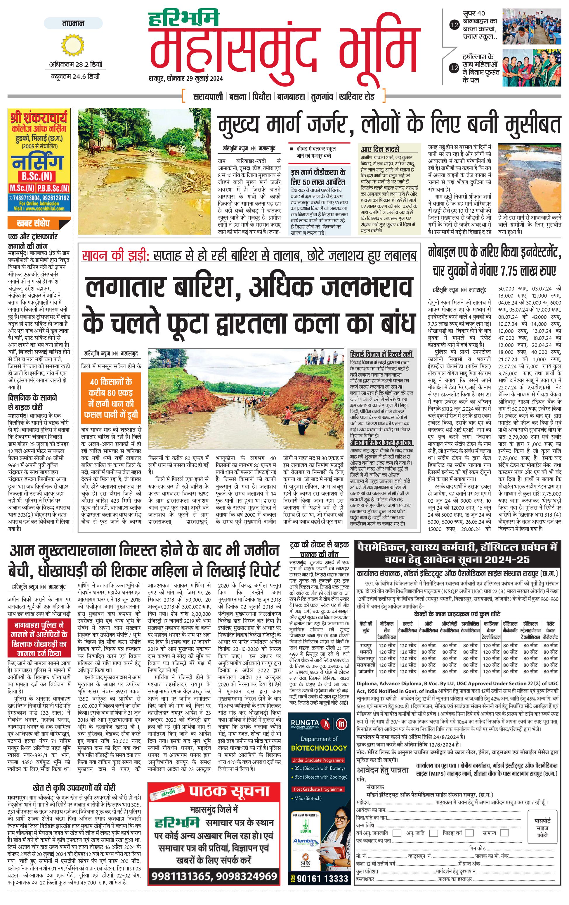 महासमुंद भूमि - 29 Jul 2024 - - Page 1