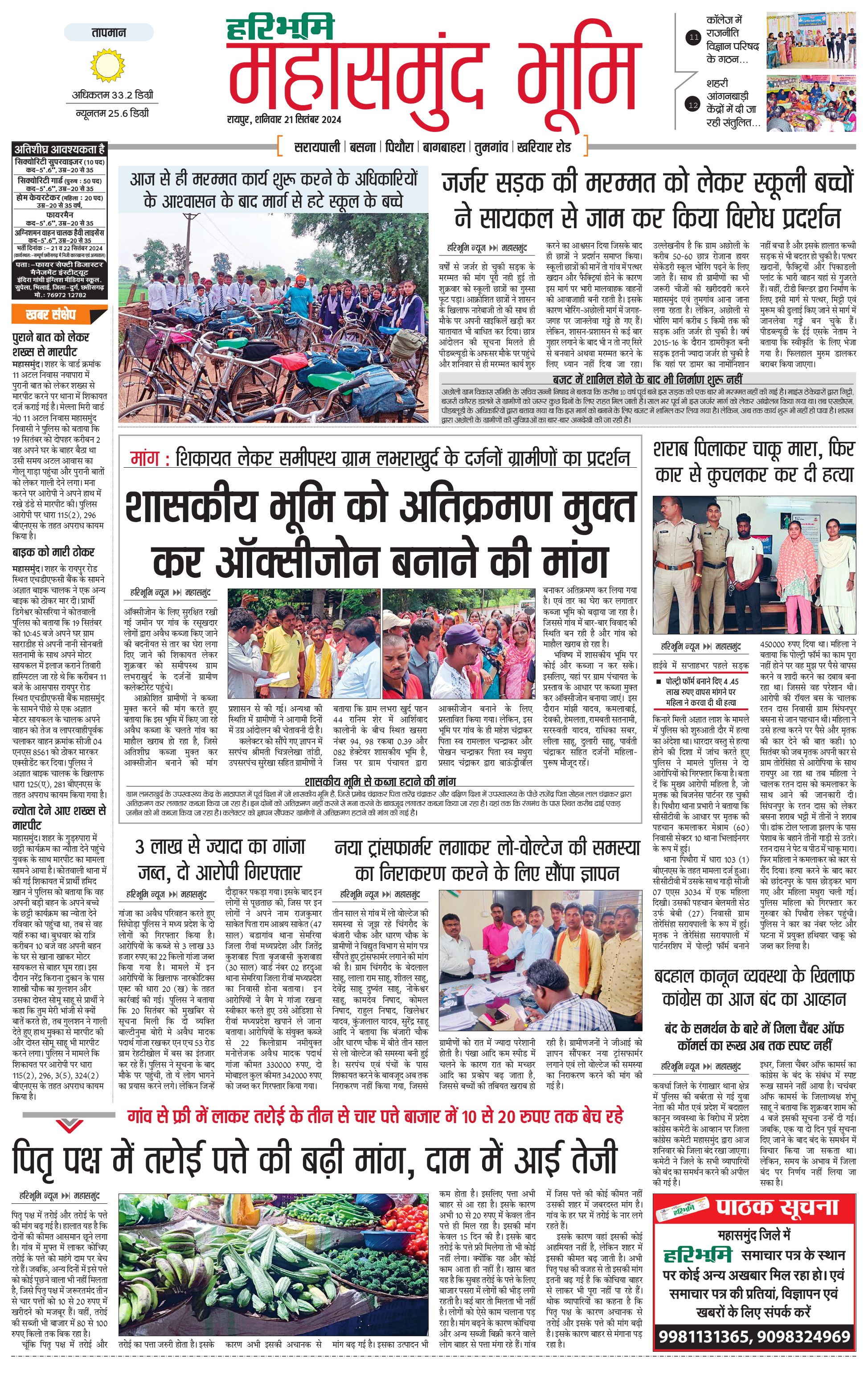 महासमुंद भूमि - 21 Sep 2024 - - Page 1