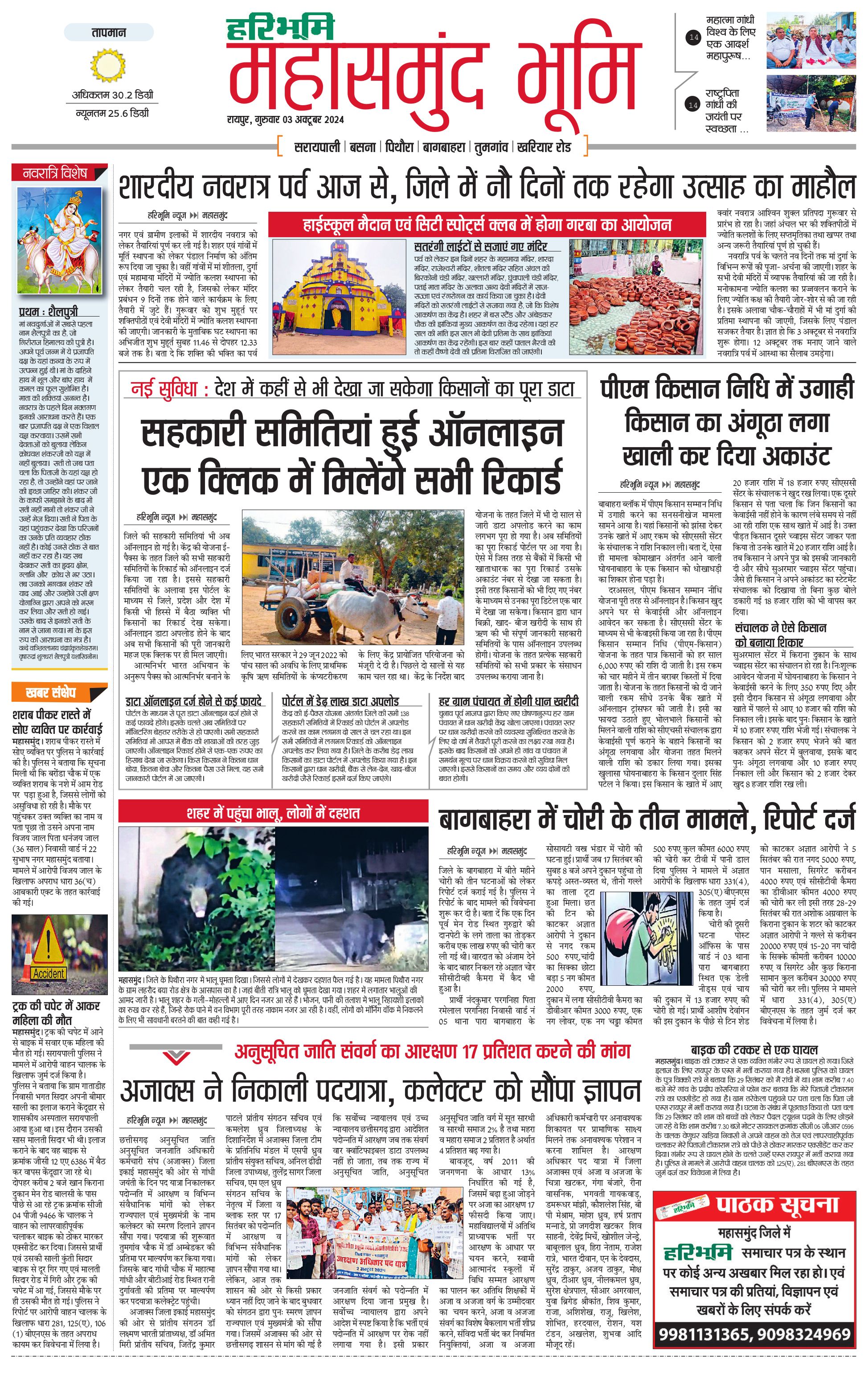 महासमुंद भूमि - 03 Oct 2024 - - Page 1