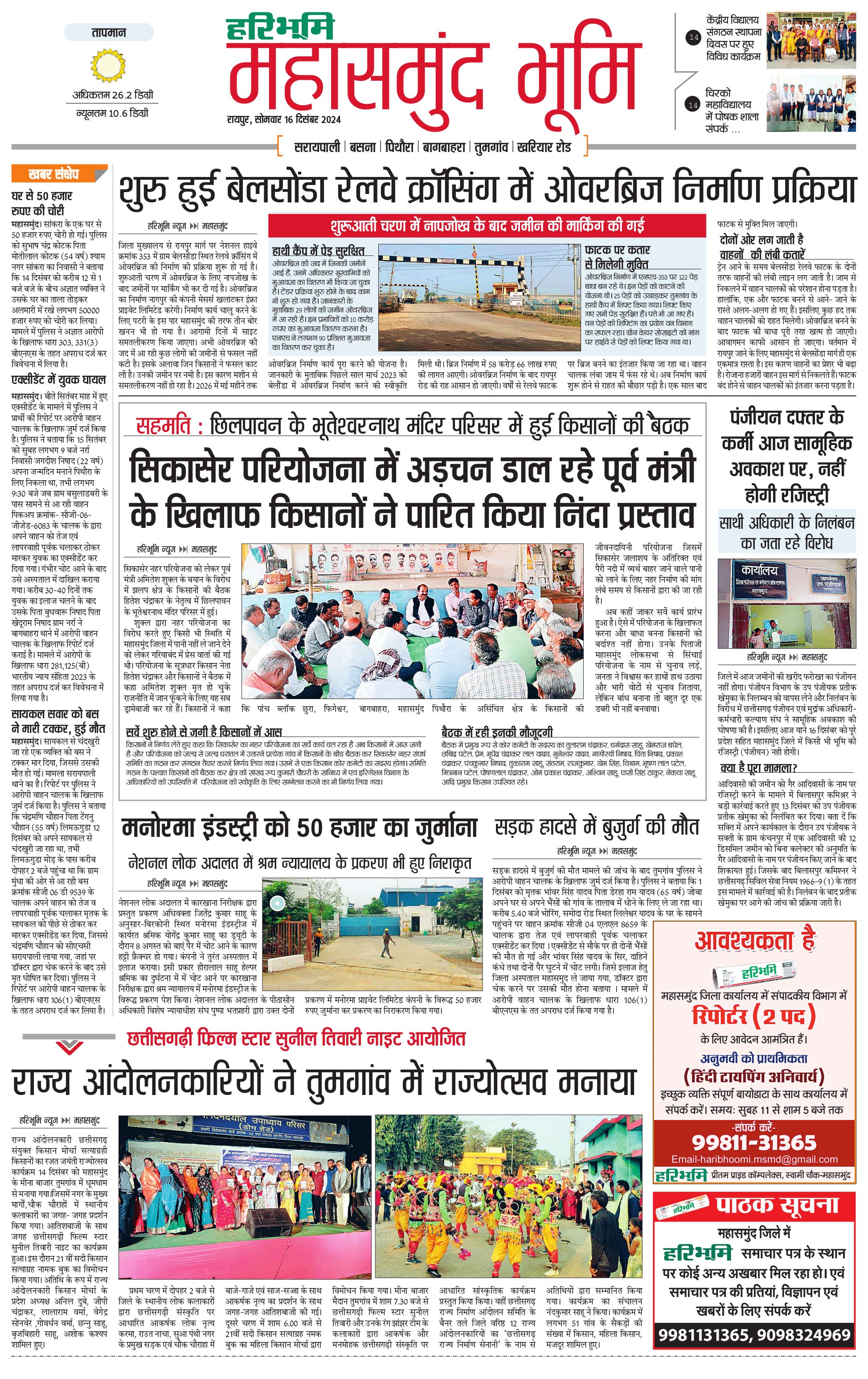 महासमुंद भूमि - 16 Dec 2024 - - Page 1