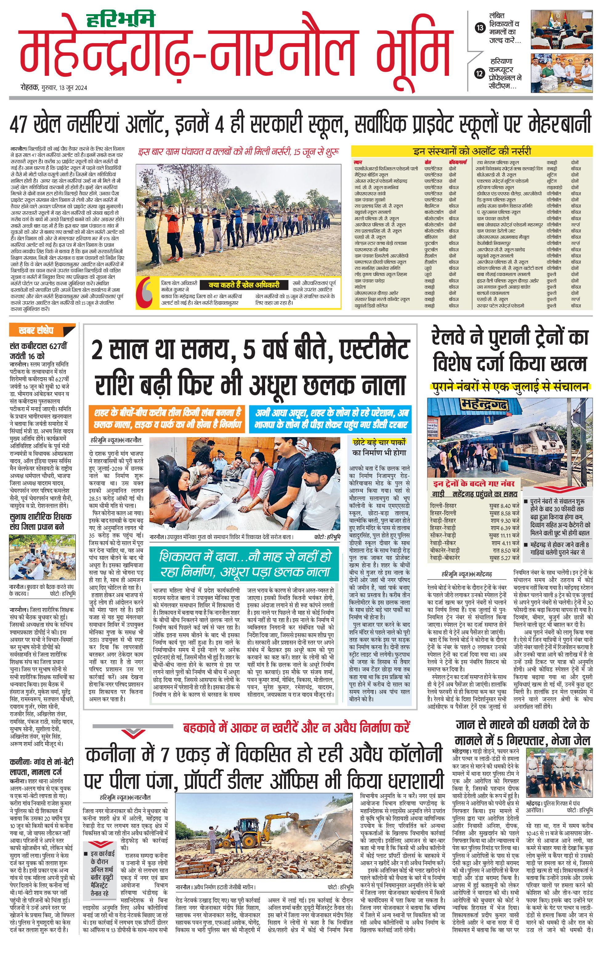 महेंद्रगढ़ - 13 Jun 2024 - - Page 1