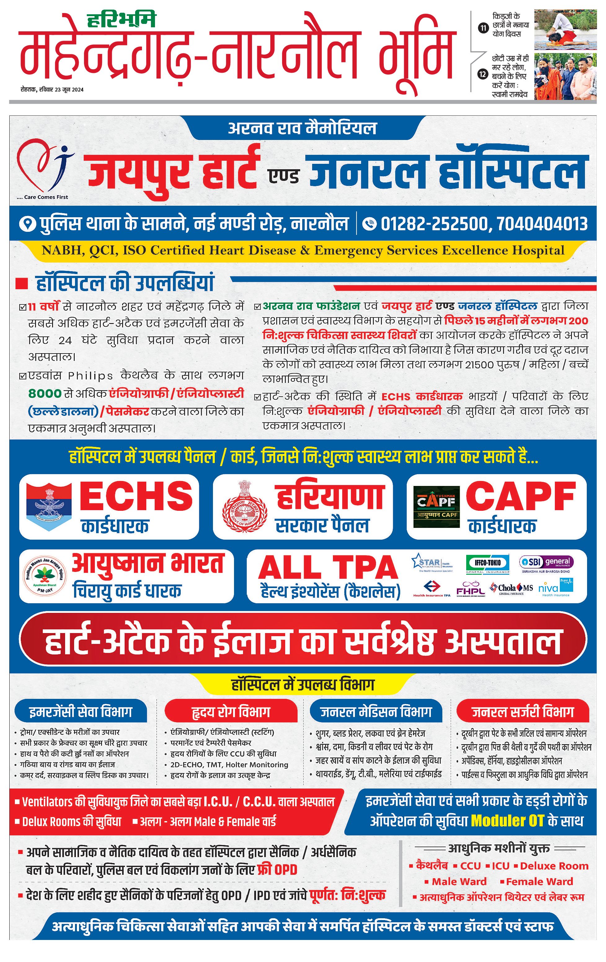 महेंद्रगढ़ - 23 Jun 2024 - - Page 1