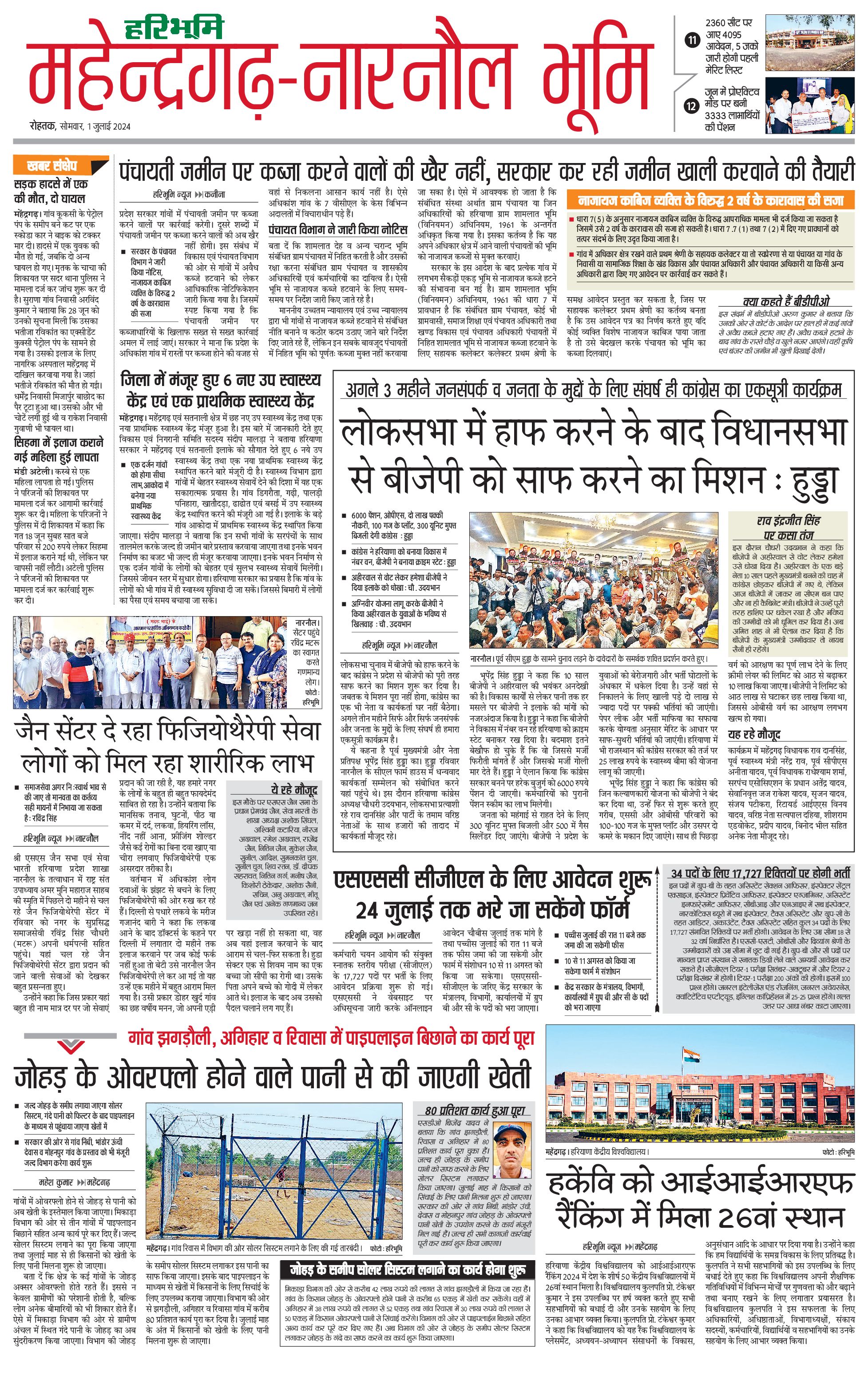 महेंद्रगढ़ - 01 Jul 2024 - - Page 1