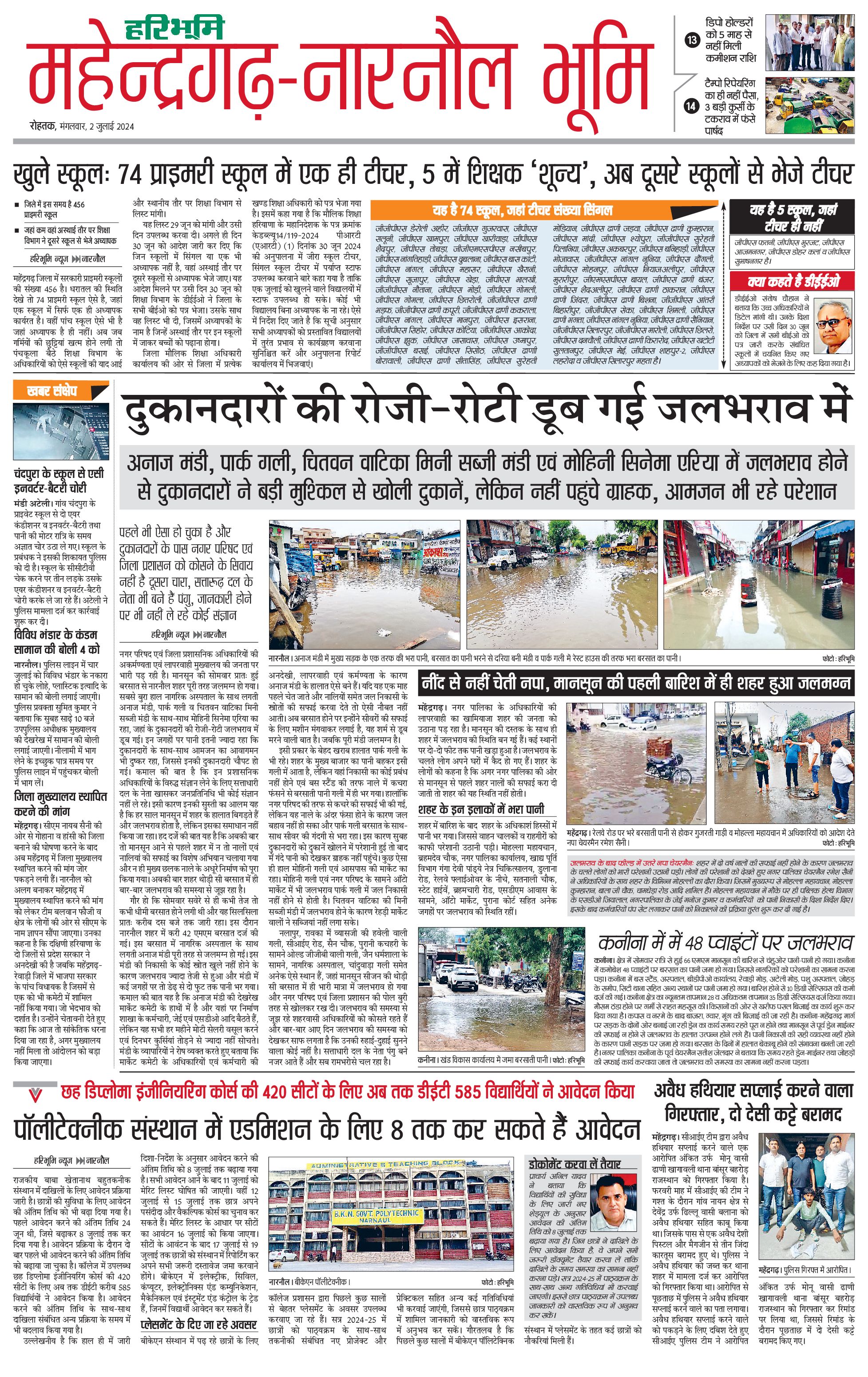महेंद्रगढ़ - 02 Jul 2024 - - Page 1