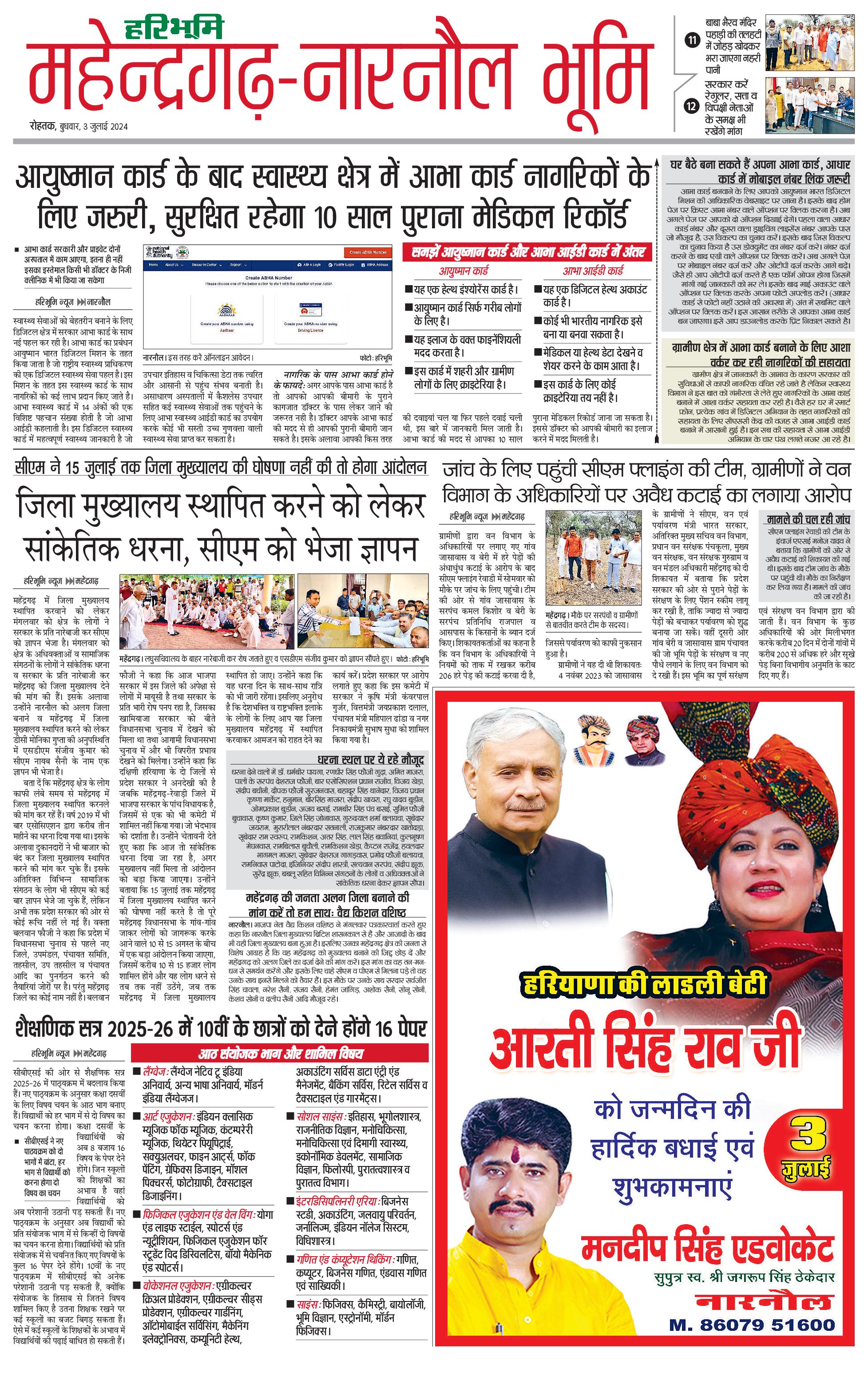 महेंद्रगढ़ - 03 Jul 2024 - - Page 1
