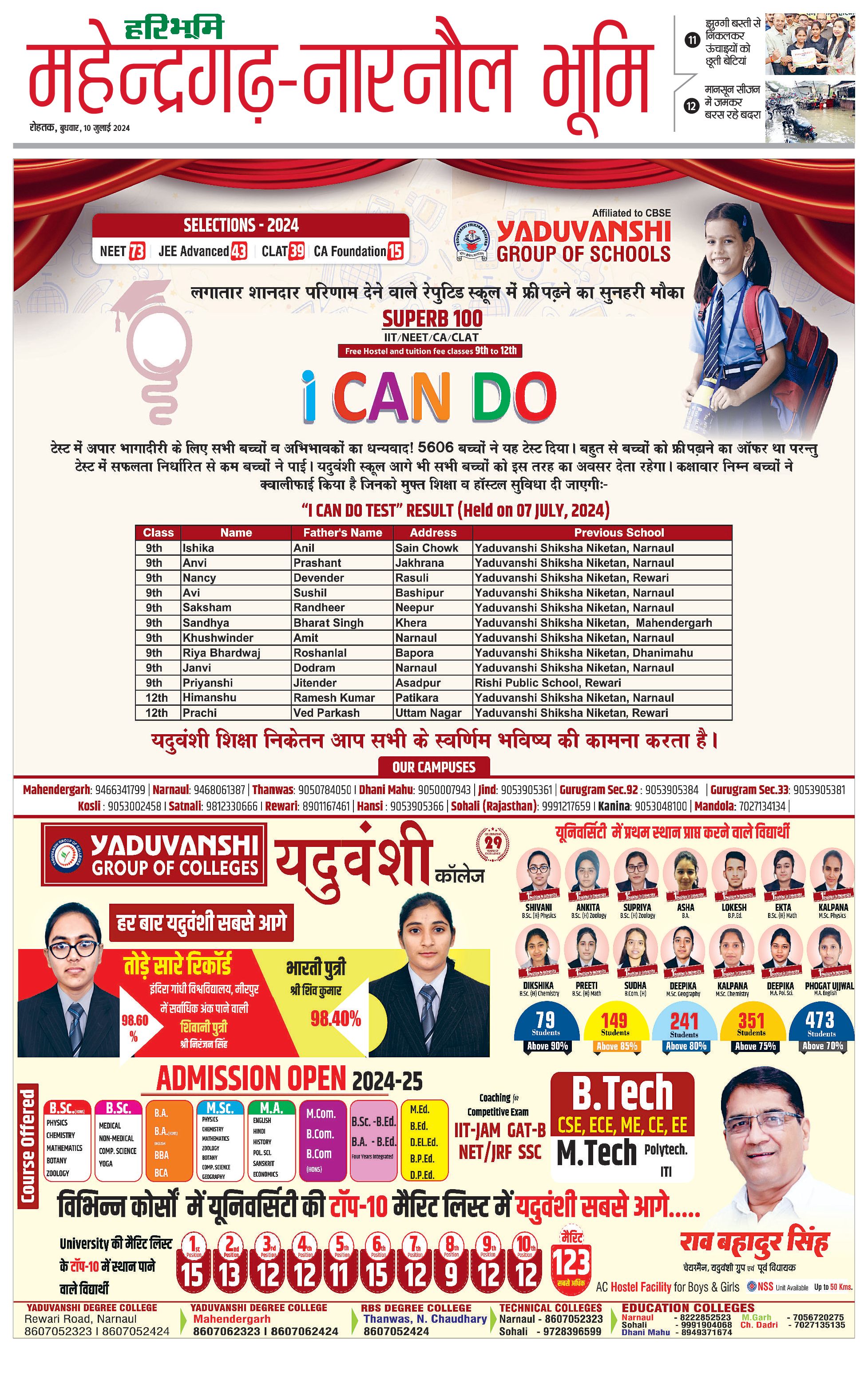 महेंद्रगढ़ - 10 Jul 2024 - - Page 1