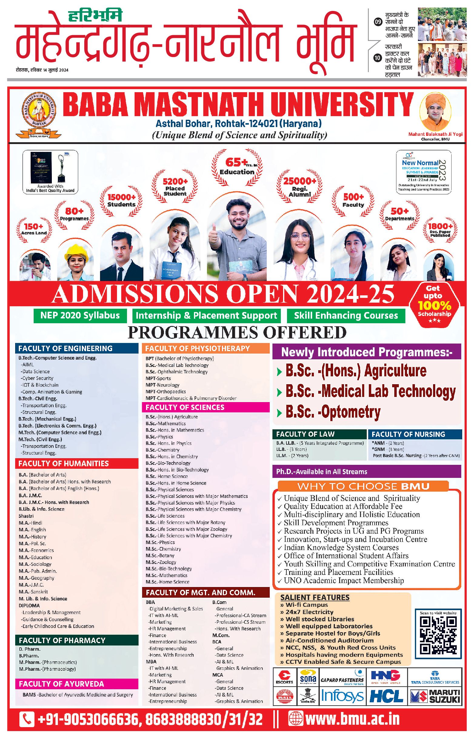 महेंद्रगढ़ - 14 Jul 2024 - - Page 1