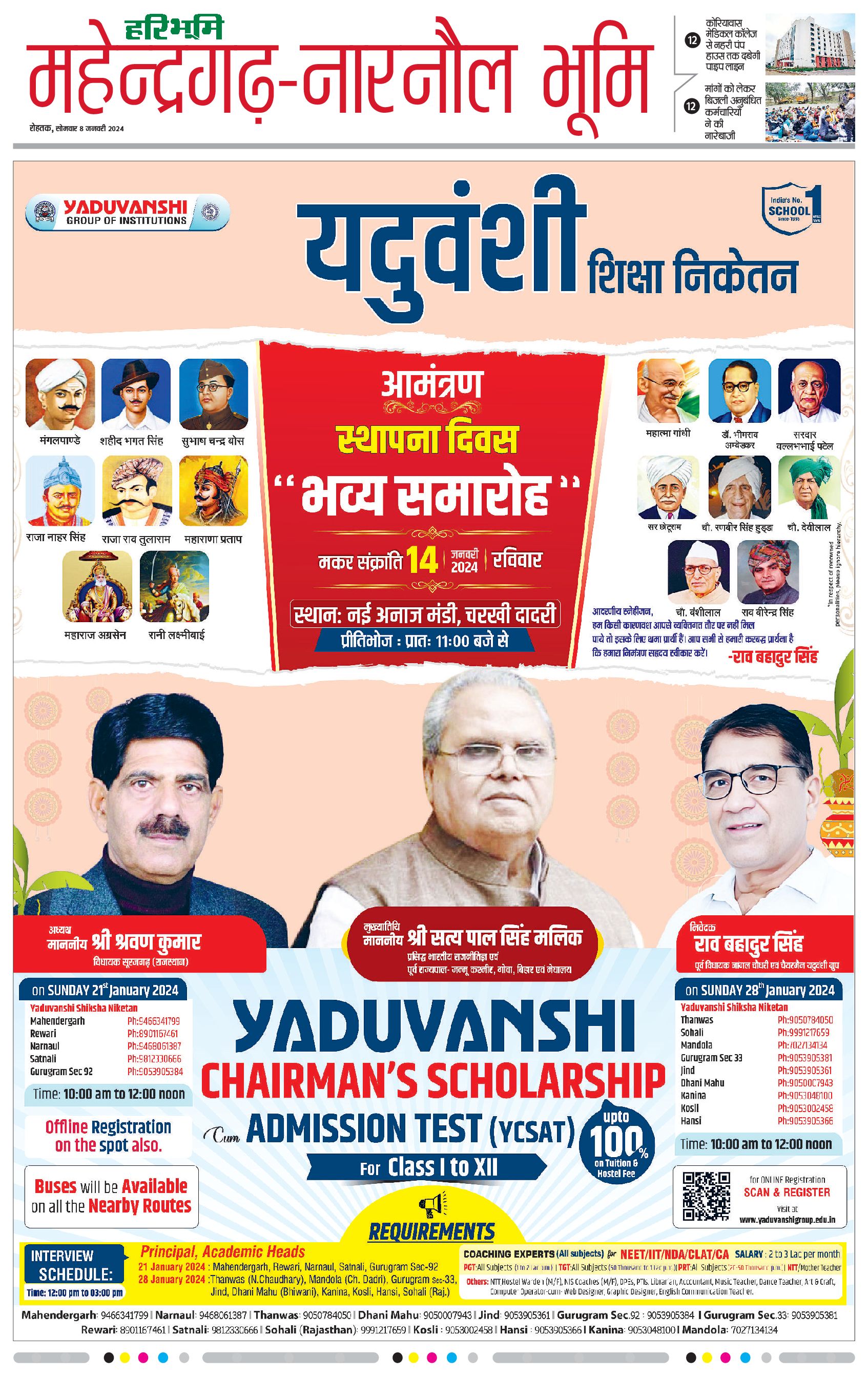 महेंद्रगढ़ - 08 Jan 2024 - - Page 1