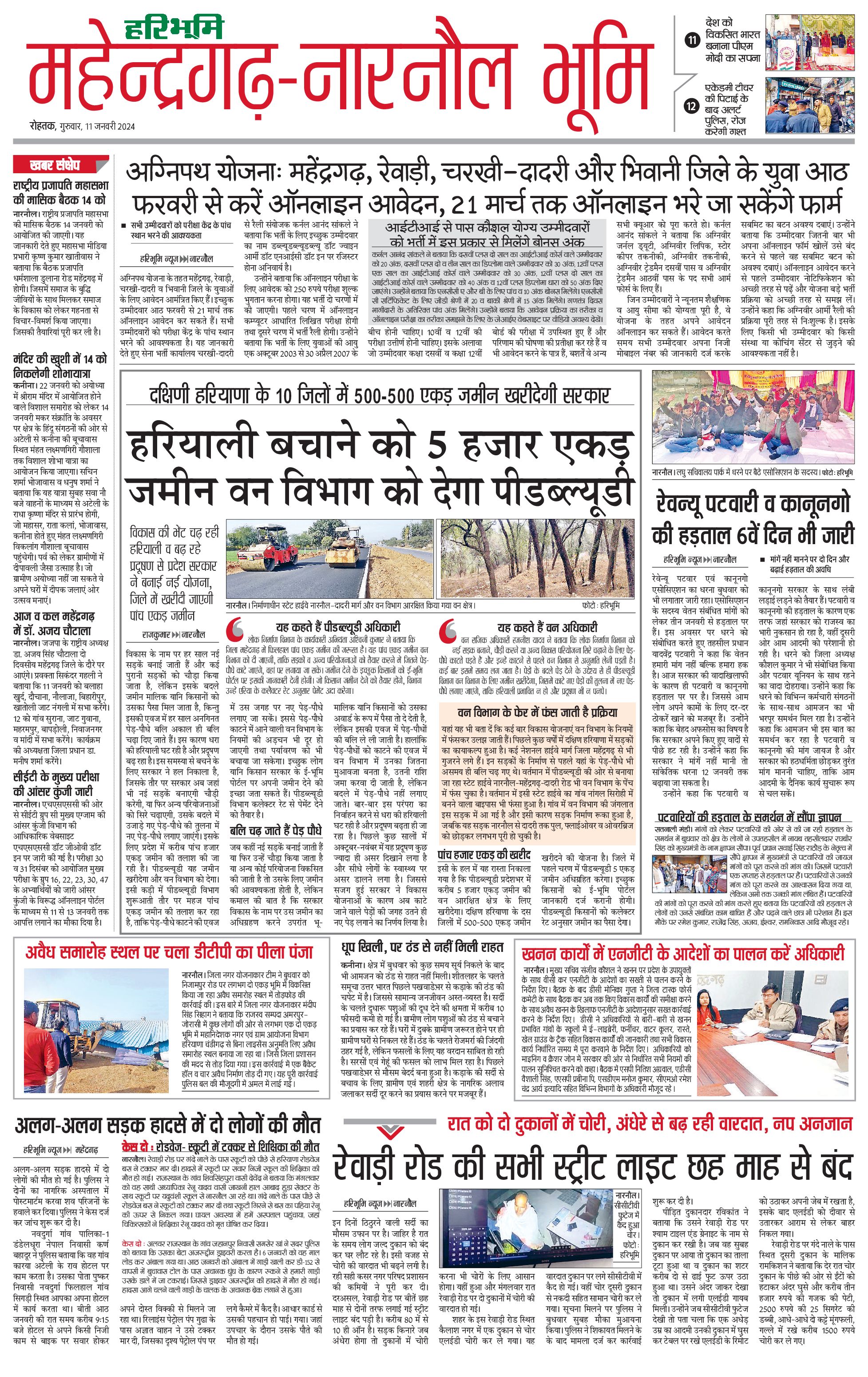 महेंद्रगढ़ - 11 Jan 2024 - - Page 1