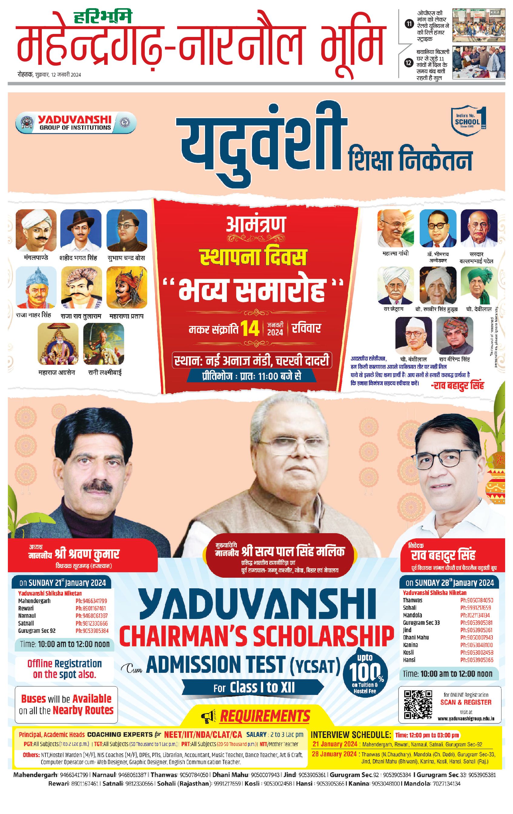 महेंद्रगढ़ - 12 Jan 2024 - - Page 1